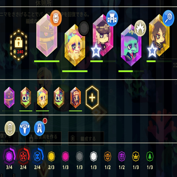 ユニットによって個性がありますが、ここでは回復役とジェムループについて説明します。