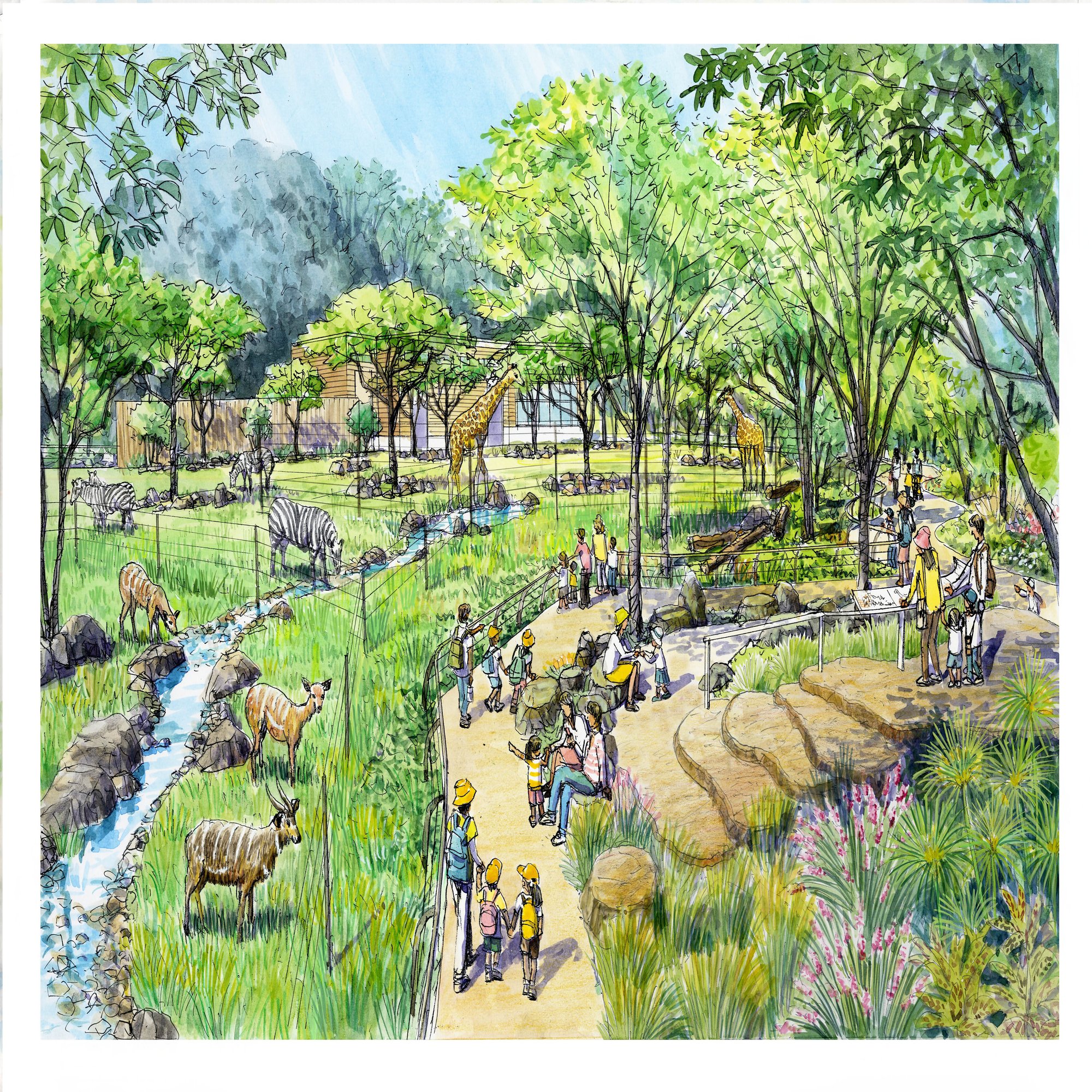 獣舎や展示施設は、動物本来のいきいきとした姿を引き出し、動物ファーストの環境へと生まれ変わっていきます。さらに来園者にとっても動物たちとの出会いをより楽しめるよう、展示方法にも新しい工夫が加わります。