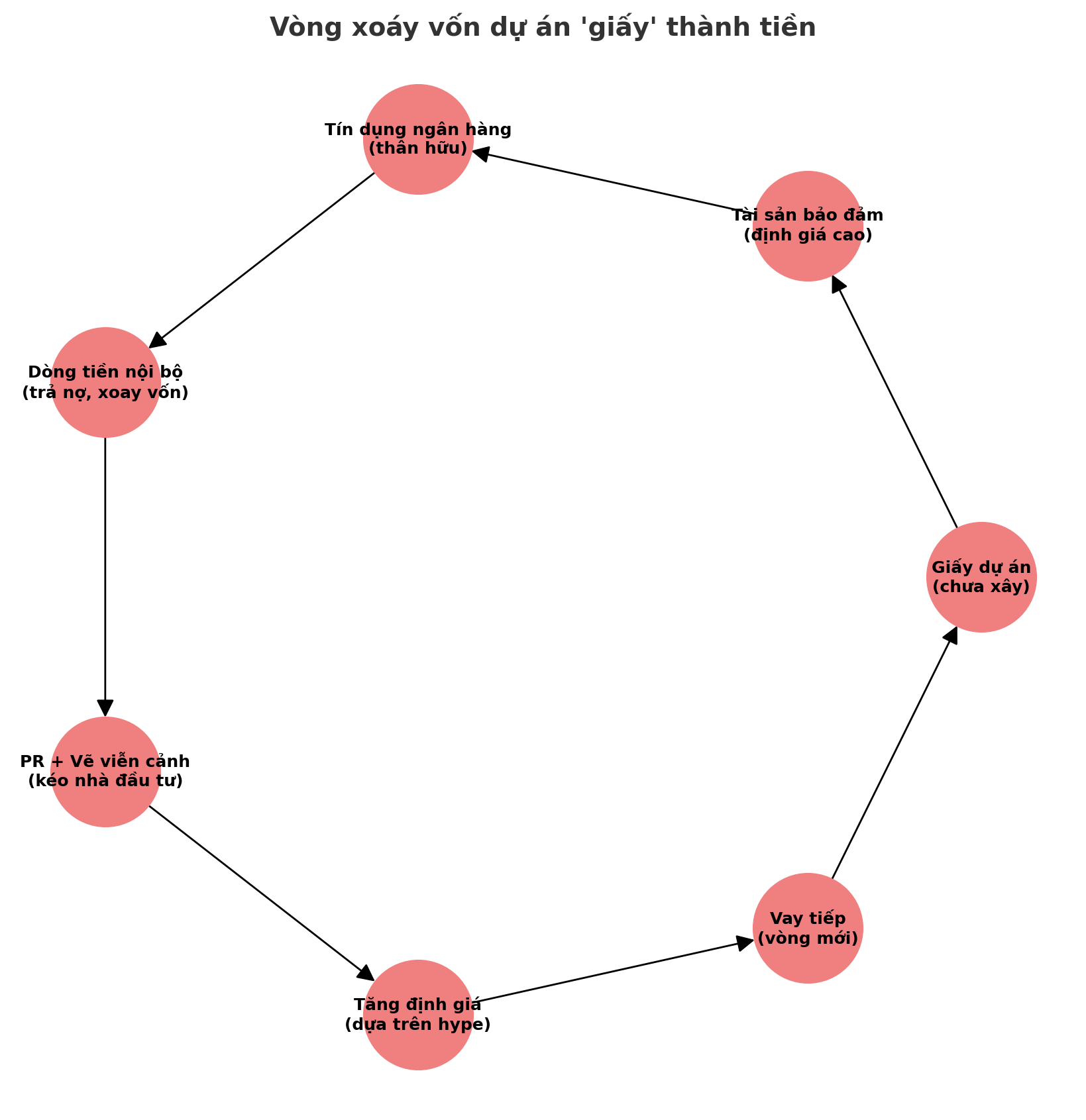Tiền vay này không nhất thiết đổ hết vào dự án; một phần có thể xoay vòng sang trả nợ cũ, nuôi các công ty sân sau, hoặc làm vốn đối ứng cho những dự án khác đang lỗ nặng như Vinfast — tức là một chuỗi “tay phải cầm giấy, tay trái rút tiền”.