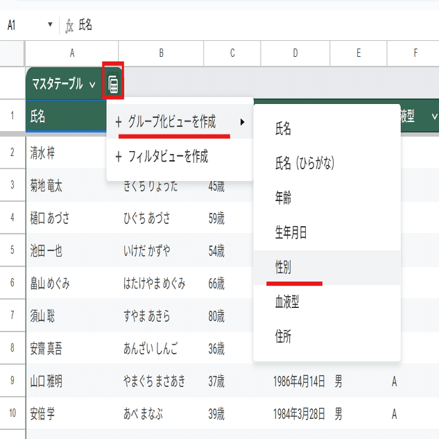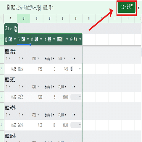 グループビューはGoogleスプレッドシートの便利機能 フィルタビューの変化形のような機能で、