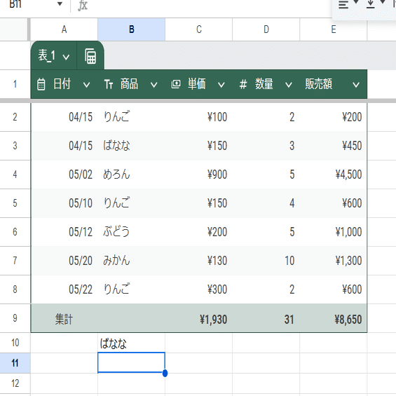 Googleスプレッドシートのテーブル機能を取り上げる note 3回目です。