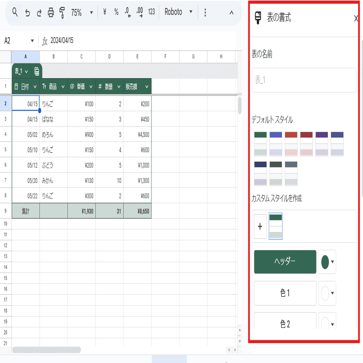 フッター行(集計行)以外の、表の高度な書式設定で出来ることを見ていきましょう。