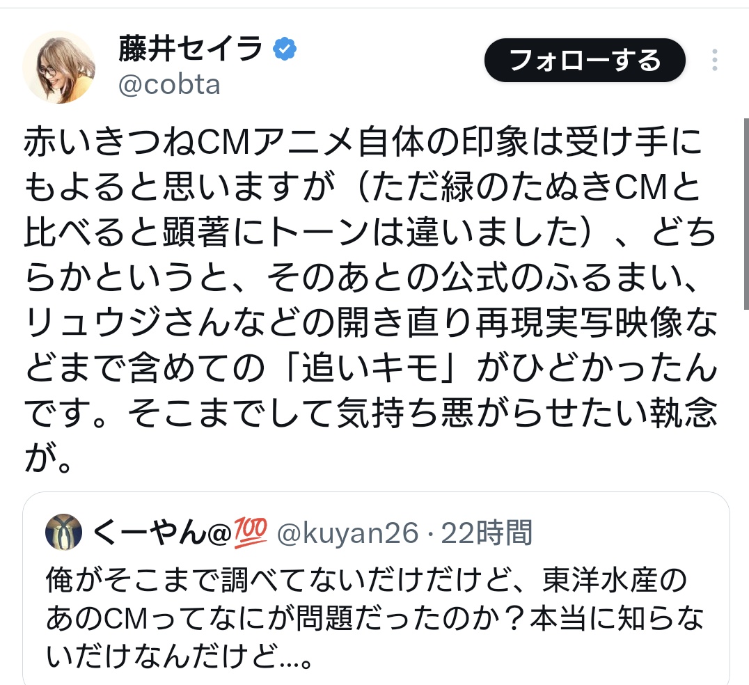 > 人知れず公式アカウントの運用をそっと変えてる企業はありますよ。 「人知れず運用を変えている」はずなのに何故恐らく社外であろうこの人は知っているんだろう…機密漏洩かな…