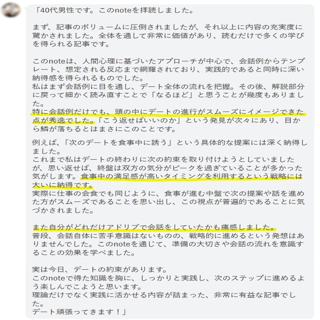 🎉noteを読んだ方から絶賛のコメント🎉