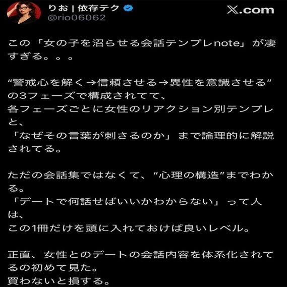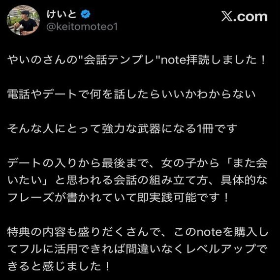 このnoteは、9年かけて研究し尽くした、もっとも再現性が高くモテる会話をテンプレにまとめました。