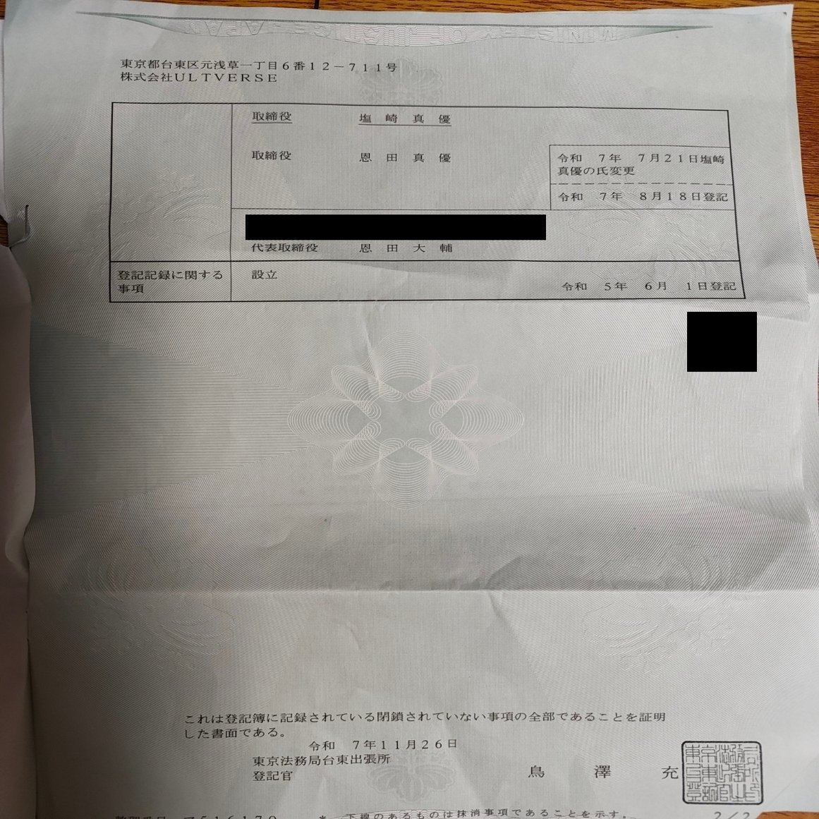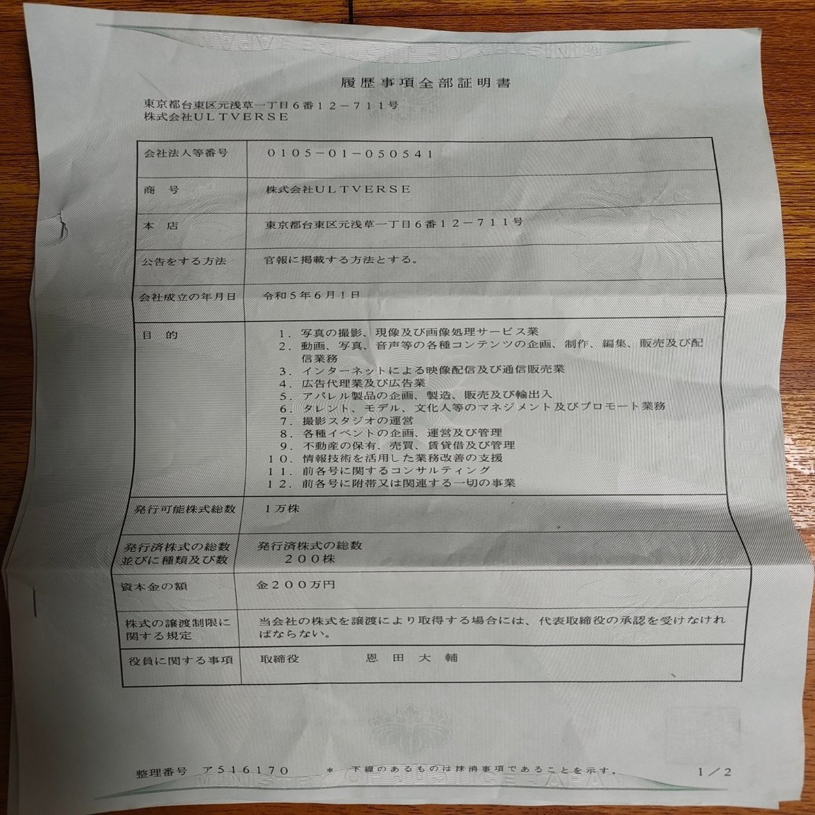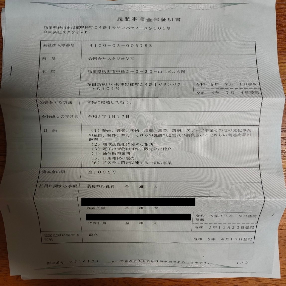 そうです。合同会社スタジオVKの登記を取ってみたのです。