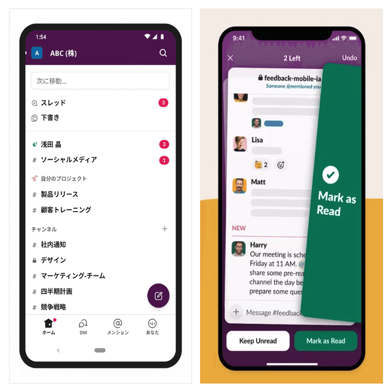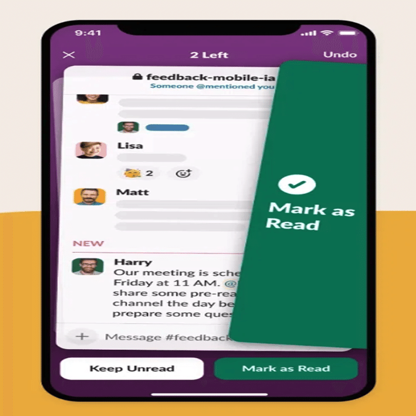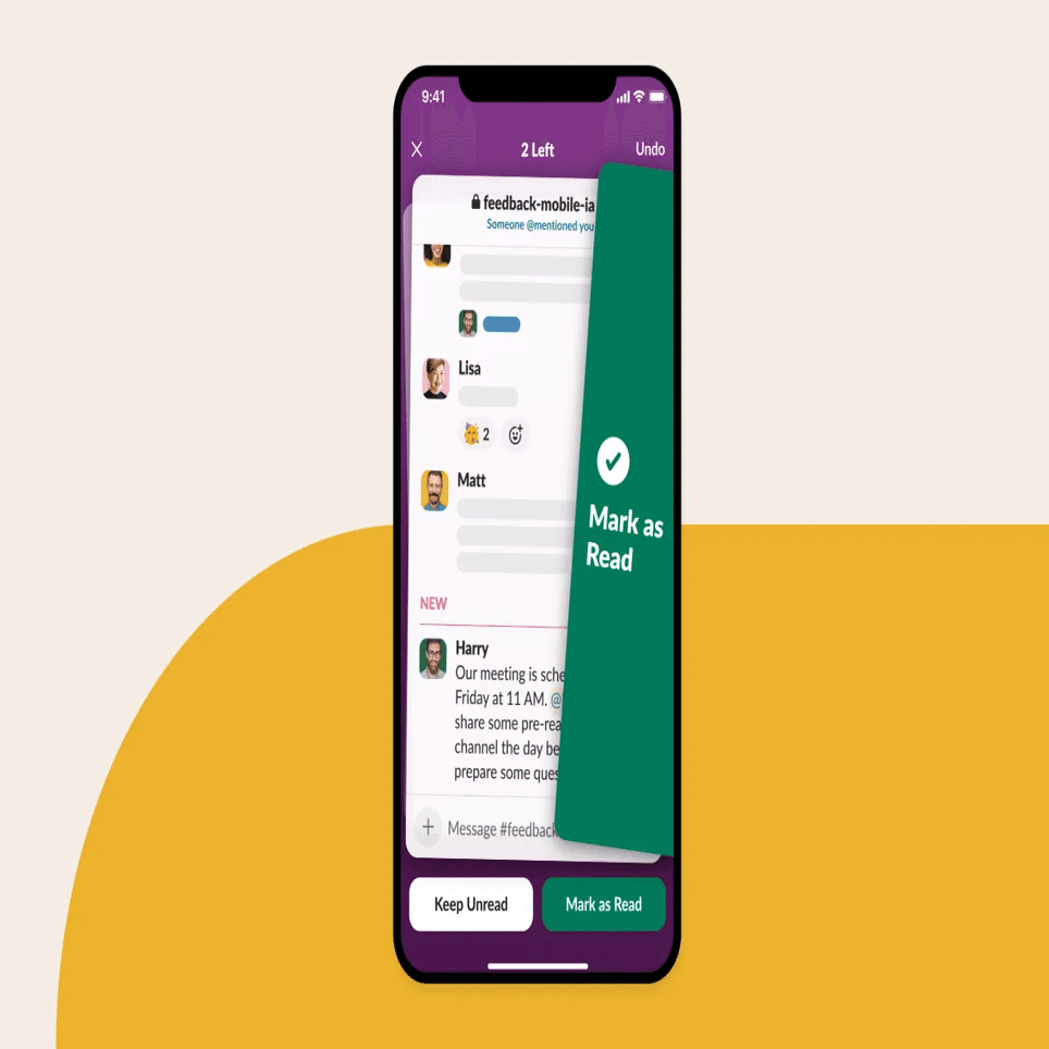 そこで導入されたのがキャッチアップです。この画面では各チャンネルがカードになっており、それを左右にスワイプしていくことで、既読にするか未読にするかを選ぶことができます。
