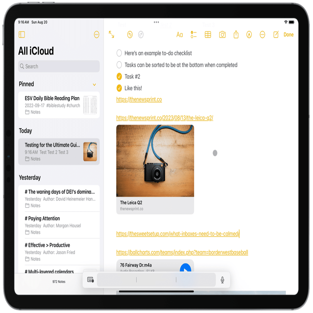 例えばAppleの「メモ」アプリは、書いたメモが時系列に並んでいきます。最新のものが一番上、古いものが一番下。書いたメモはどんどん下に流されていきます。