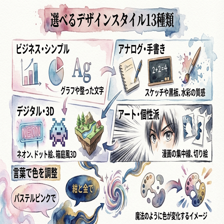 ビジネスからアートまで、一瞬で切り替えリファレンス画像で自分だけの図解が作れる