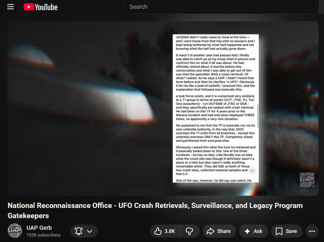For a deeper dive on the NRO, I highly recommend checking out UAPGerb’s latest video here: