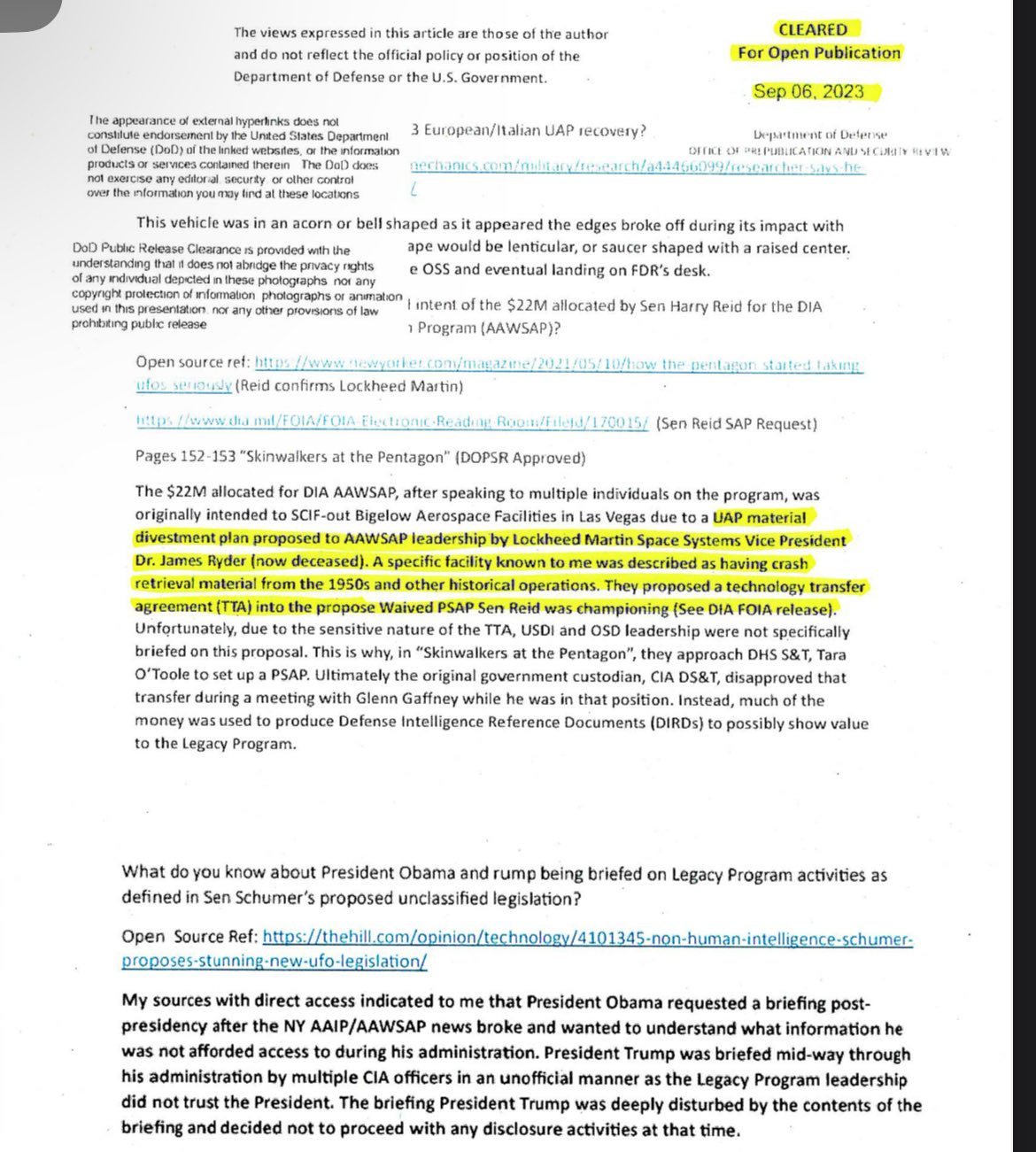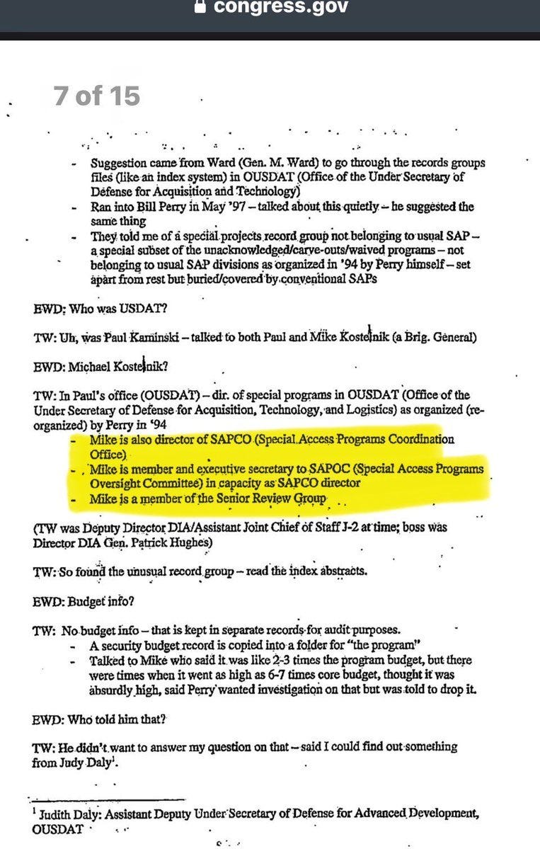 ( From Knapps book “Skinwalkers at the Pentagon” on page 152-153 now on congressional archives )