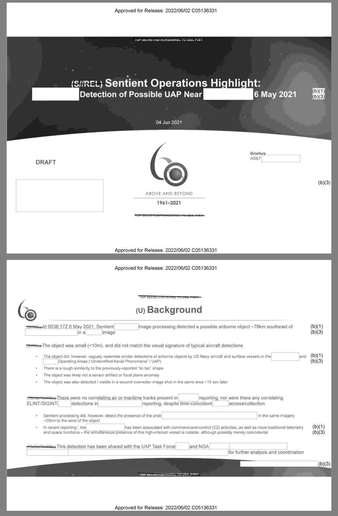 In 2021, declassssified in 2022, NRO Sentient AI Program documents show the detection of UAP. This is a fact, the National Reconnassiance office admitted that it tracks UAP as if the 2010’s and 2020s. This comes from whistleblower testimonty from Matthew Brown and Immacculate Constellation which is now in congressional archives: