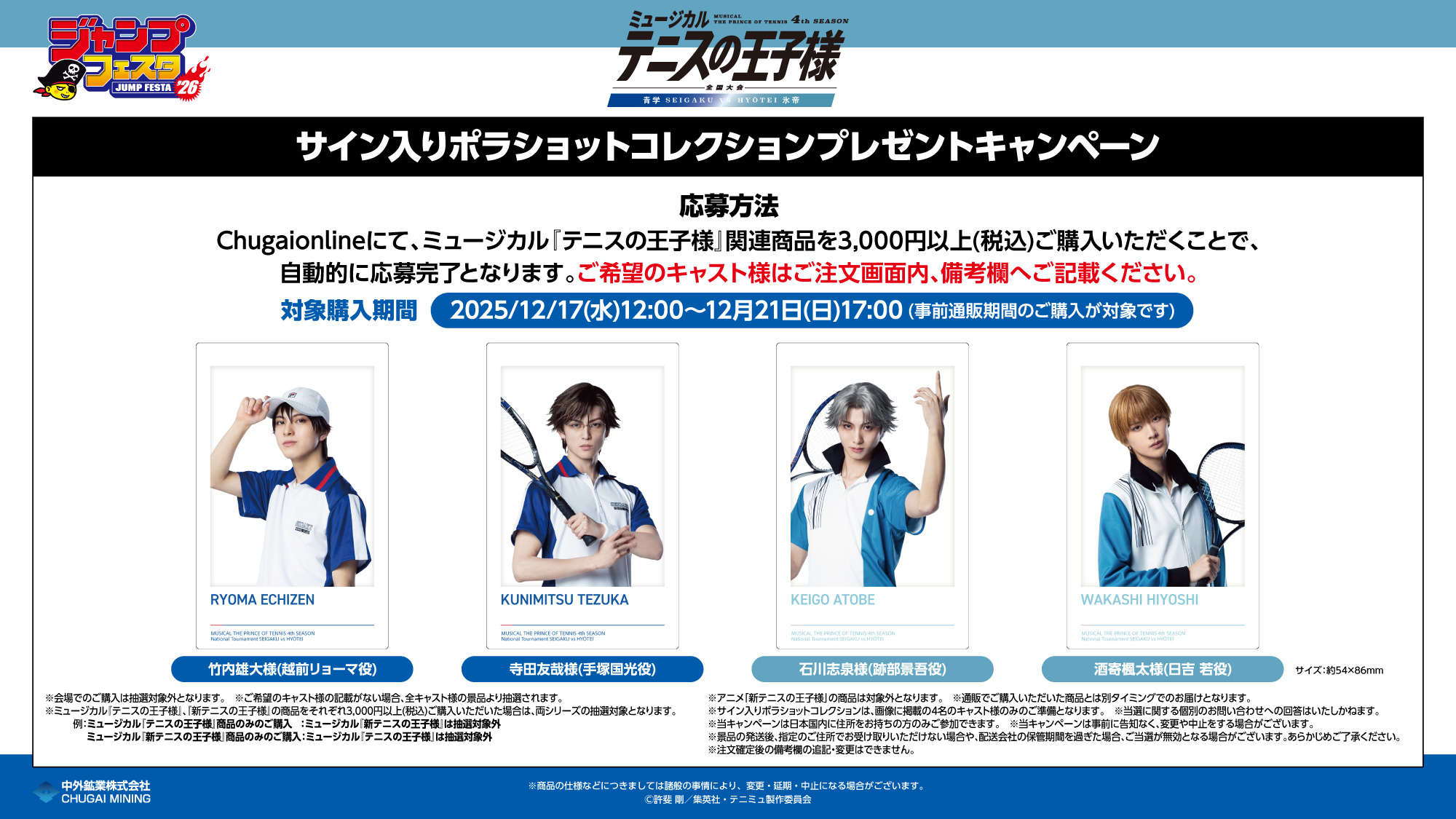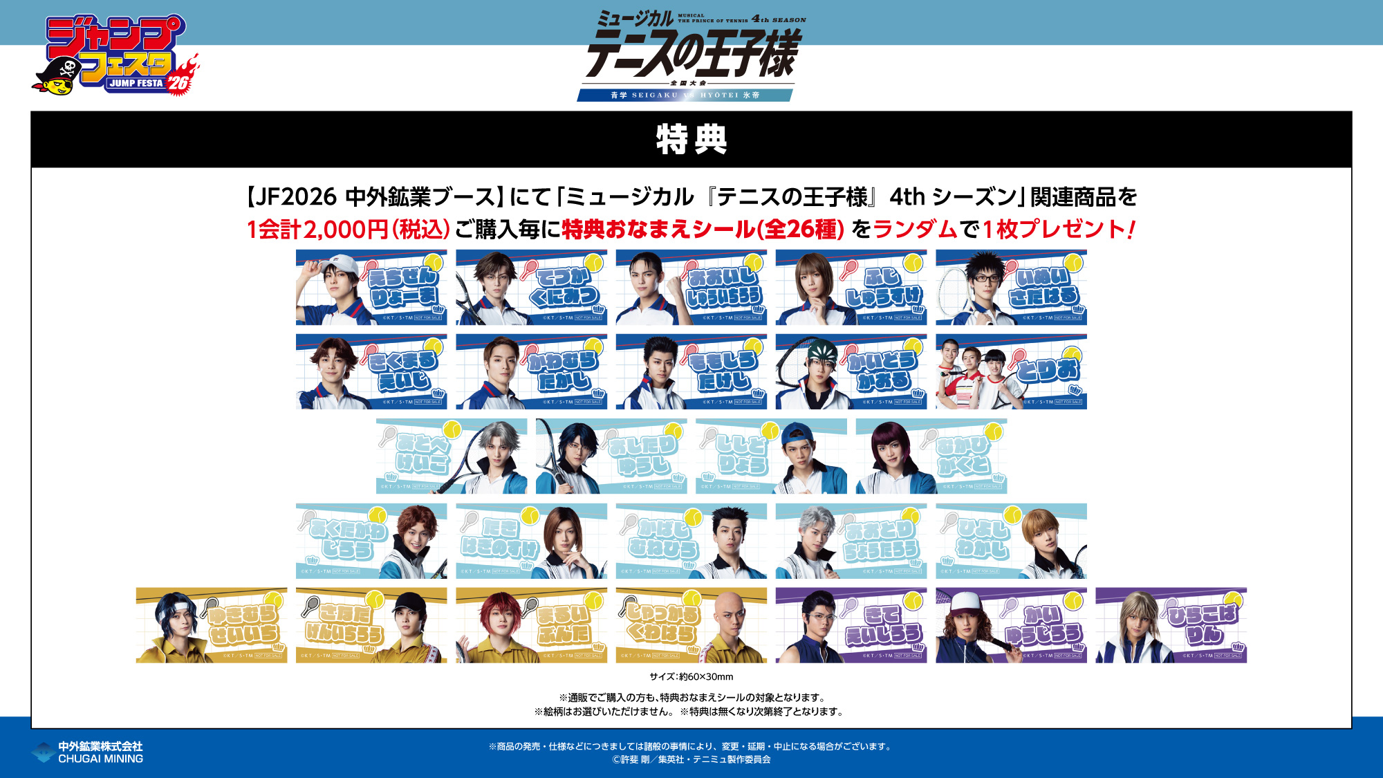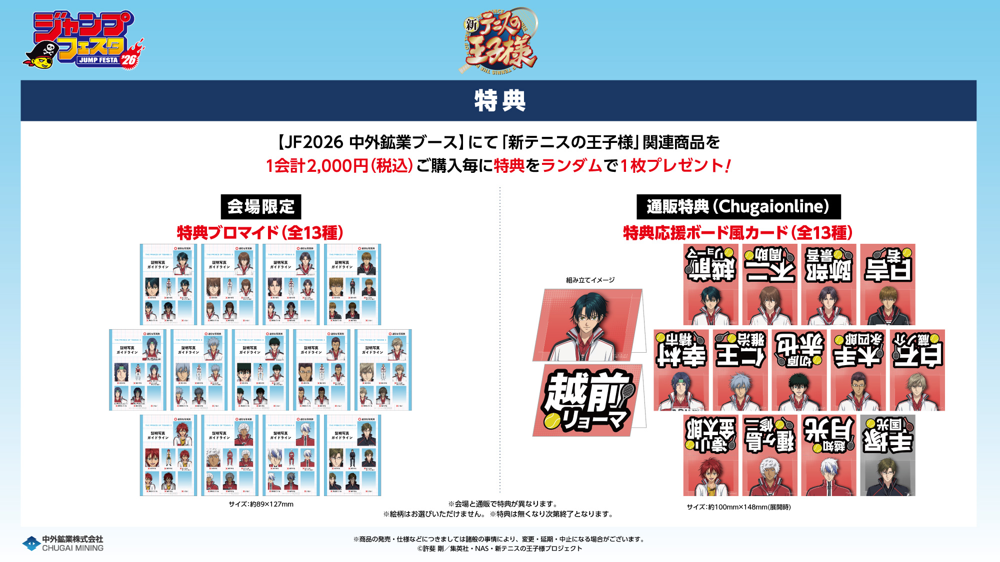 ・中外鉱業ブースでは混雑状況により、当日「ジャンプNAVI」アプリにて物販入場整理券を配布いたします。