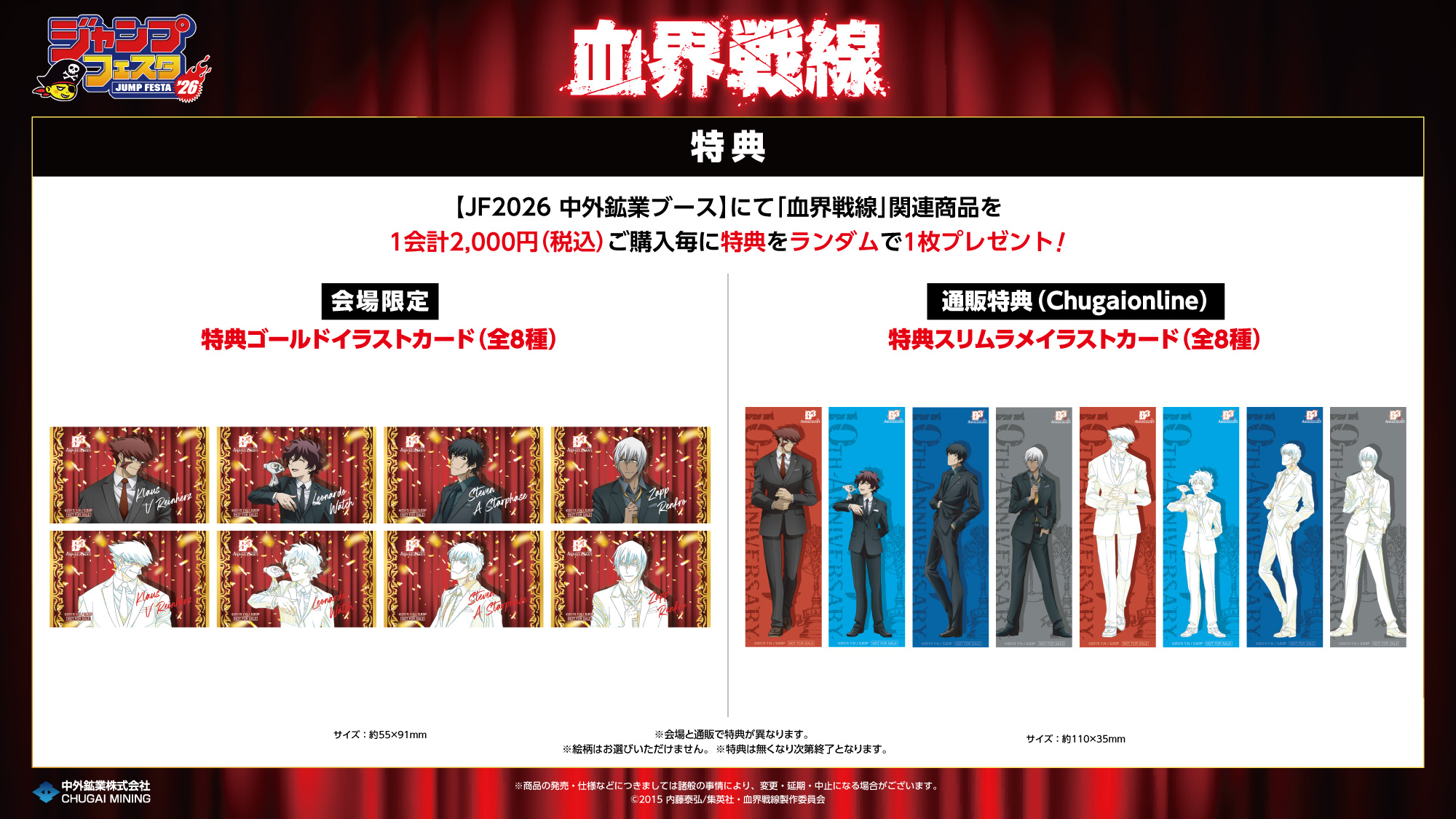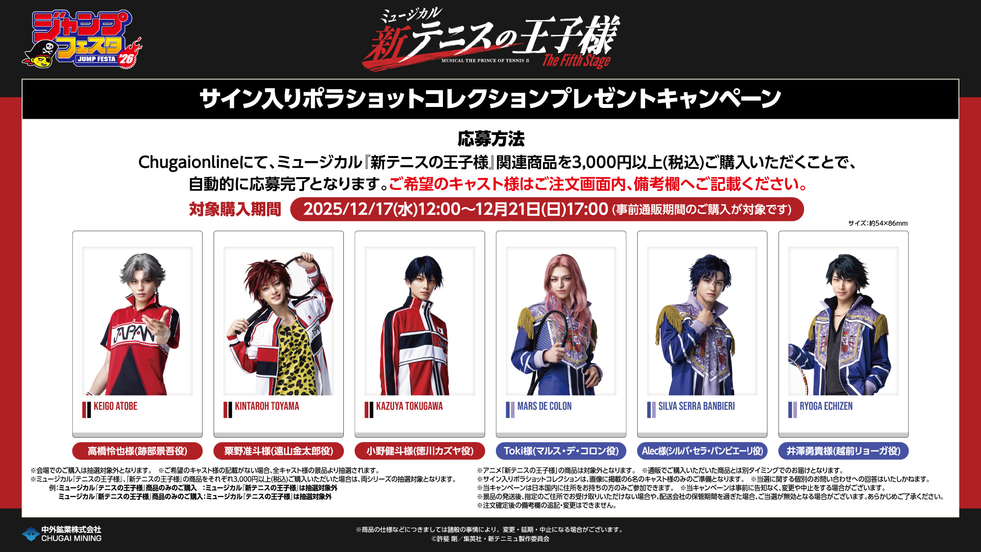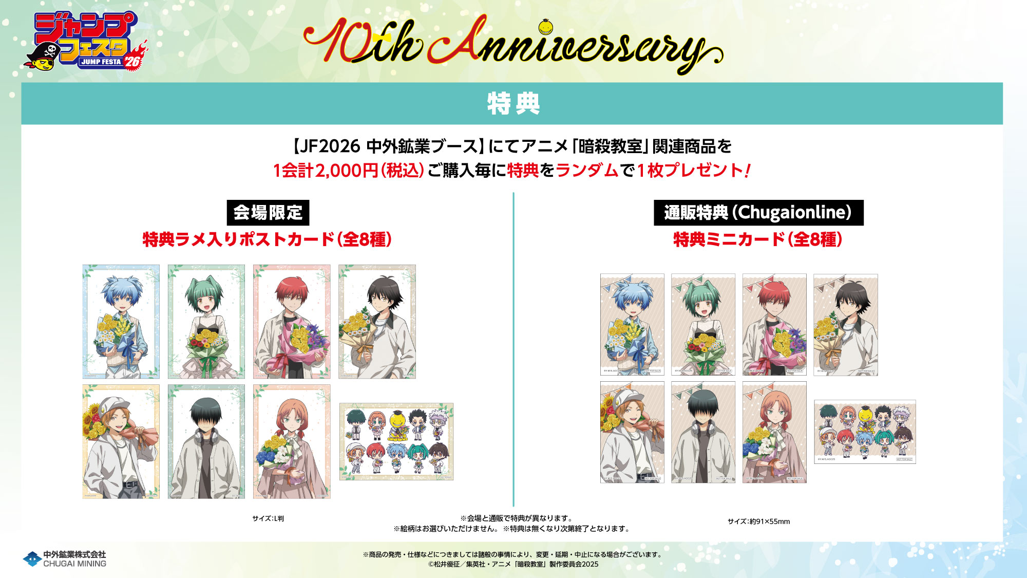 ・中外鉱業ブースでは混雑状況により、当日「ジャンプNAVI」アプリにて物販入場整理券を配布いたします。