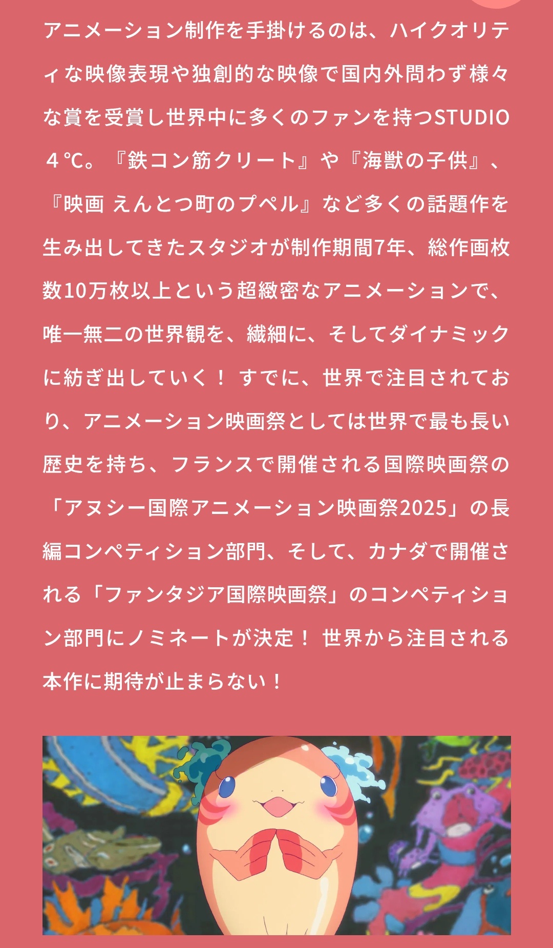 STUDIO4℃が関わった、ここ数年の映画