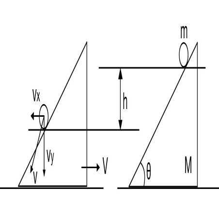 なめらかな床の上に置かれたなめらかな斜面を持つ台の上を小物体が高さh滑り降りる
