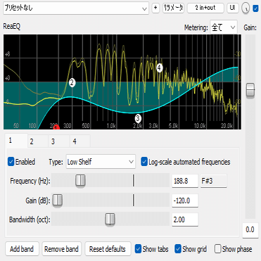 イコライザーがないとYTPMV作れません。ReaEQに関しては一日目に投稿されたとじーらさんの記事がとても参考になります!まあそれでも自分なりの使い方を説明してみようかなとか思います。マジで感覚で適当にやってるのでとじーらさんに怒られるかも。