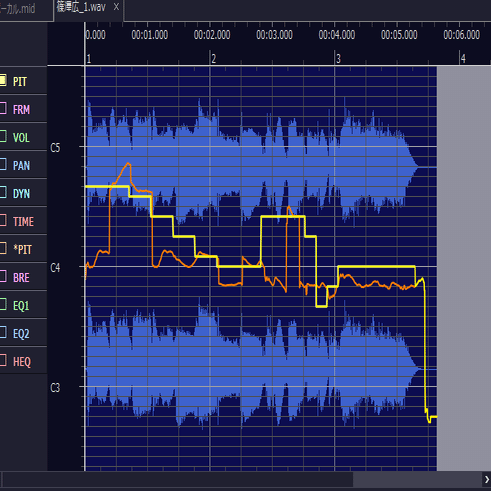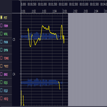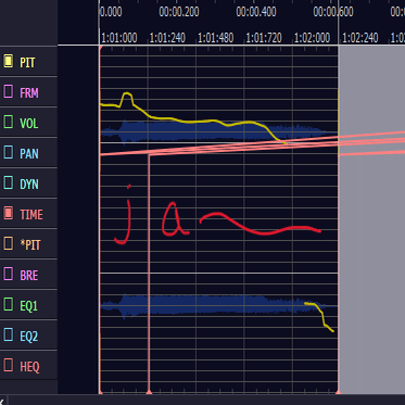 PITモードにもどって一番音程が近い線に合わせてピッチ補正しましょう。ピッチの線が綺麗だったらしなくてもいいです。