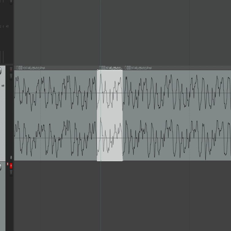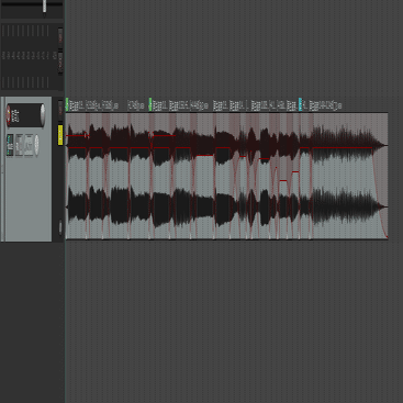 歌詞に必要な音素を集めたら歌詞通りに音を並べて、音量やフェードアウト、フェードインなどを調整してこんな感じのボーカルを作ります。