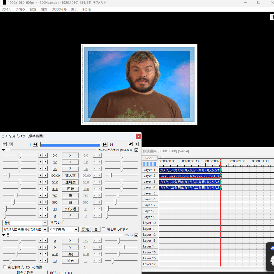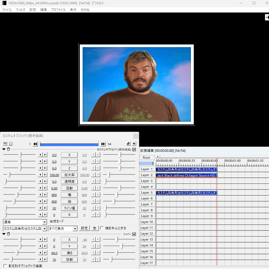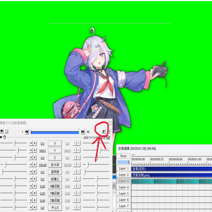これで生成したEXOをaviutlにインポートすると、メディアオブジェクトが生成されると思いますが、自分はこれを目印にして左右反転を手作業で行ってます。