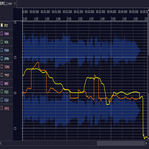 適当にこんな感じでピッチを変更しました。とりあえず音程が角ばってるところを無くすだけでもいい感じになるかも
