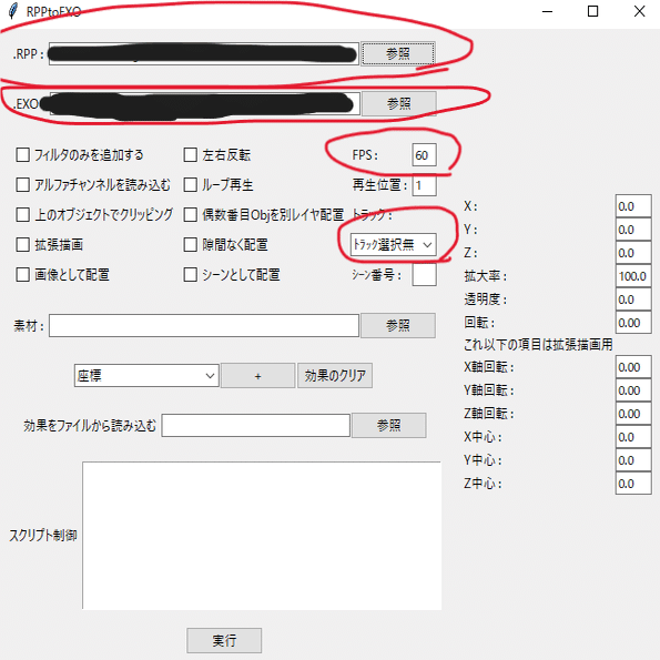 使うRPPを選択、EXOの保存場所を名前を設定、aiutlのfps値を同じにする、音合わせのトラックの選択をするだけで大丈夫です。