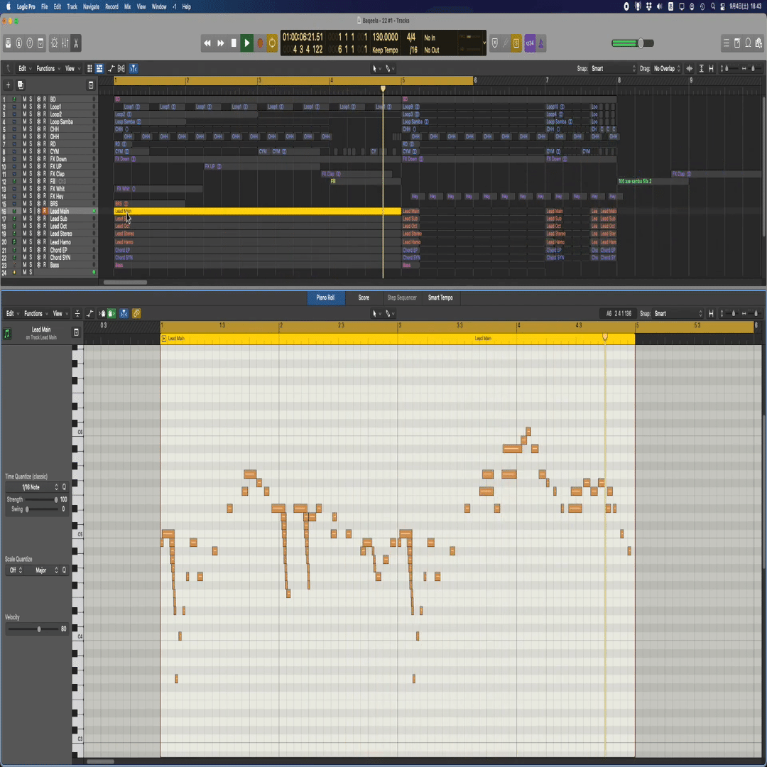 レガート(音と音を滑らかに繋ぐ奏法)を表現するために,MIDIデータ上では「前のノートが終わる直前に,次のノートが開始する」という形で記述されることがあります.これをノートオーバーラップと呼びます. これは和音とは異なり,単音の旋律において滑らかさを演出するための技法です.