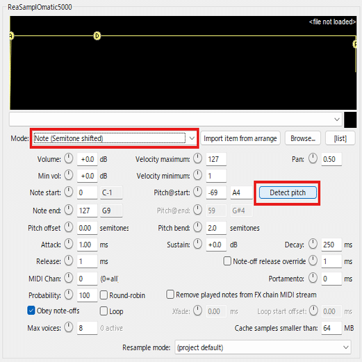 ReaSamplOmatic5000に音を取りこんだ際に手動で音の高さを合わせないといけないですが,以下の方法で簡単に自動で合わせてくれます.