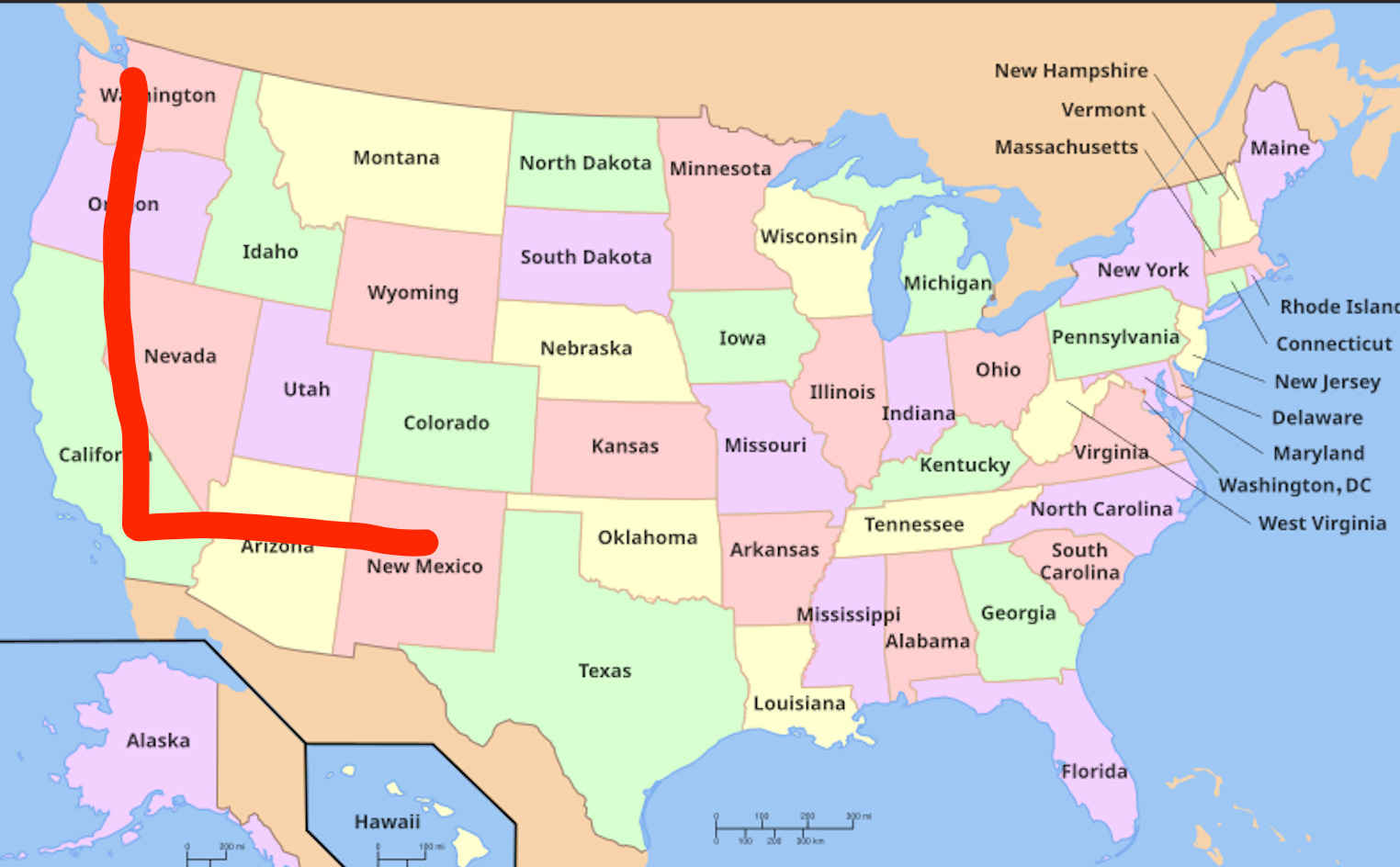 So far I’ve let the winds of change (side quests, females, craigslist) take me from place to place, as long as it’s all in the same general direction— South from Seattle to LA, East across the country, and so on. I want to do a great big circle.