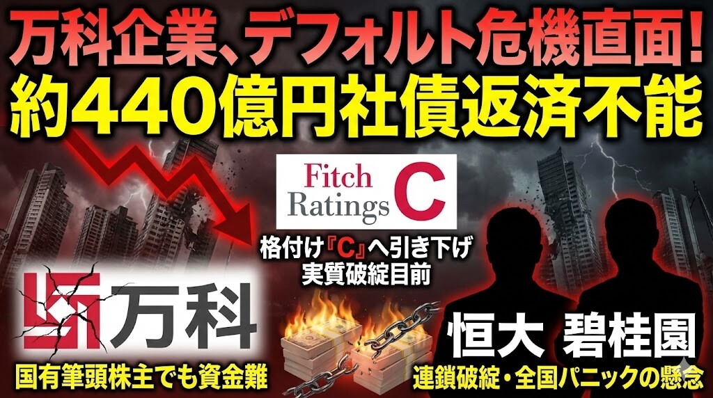 格付け大手のフィッチ・レーティングスは、同社の格付けを「D(デフォルト)」目前の「C」へと引き下げ、5営業日の猶予期間に入ったと発表している。同社は国有企業を大株主に持ち、これまで不動産不況下でも「優等生」と見なされてきたが、国有系のバックアップがあっても資金難を回避できない深刻な現状が露呈した。