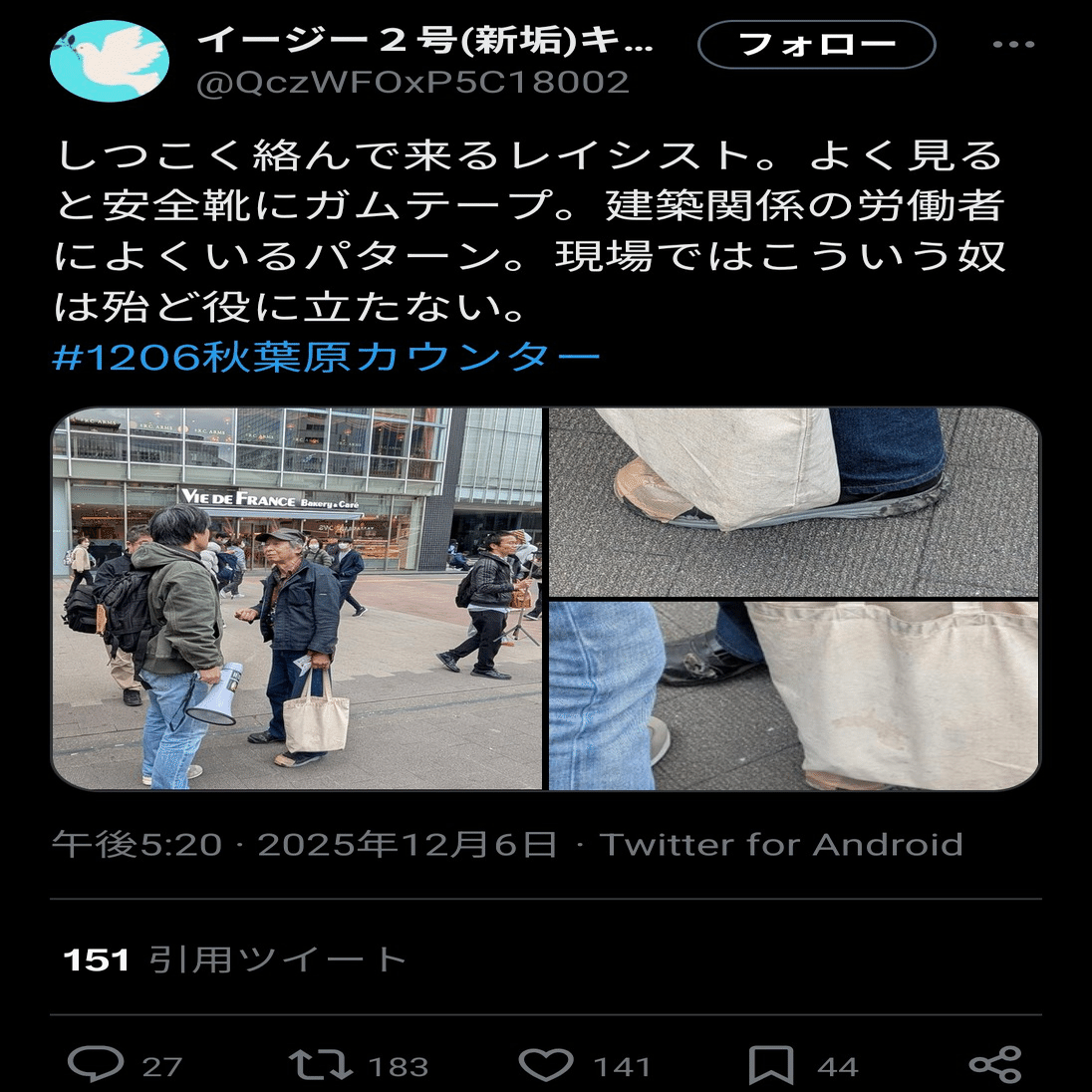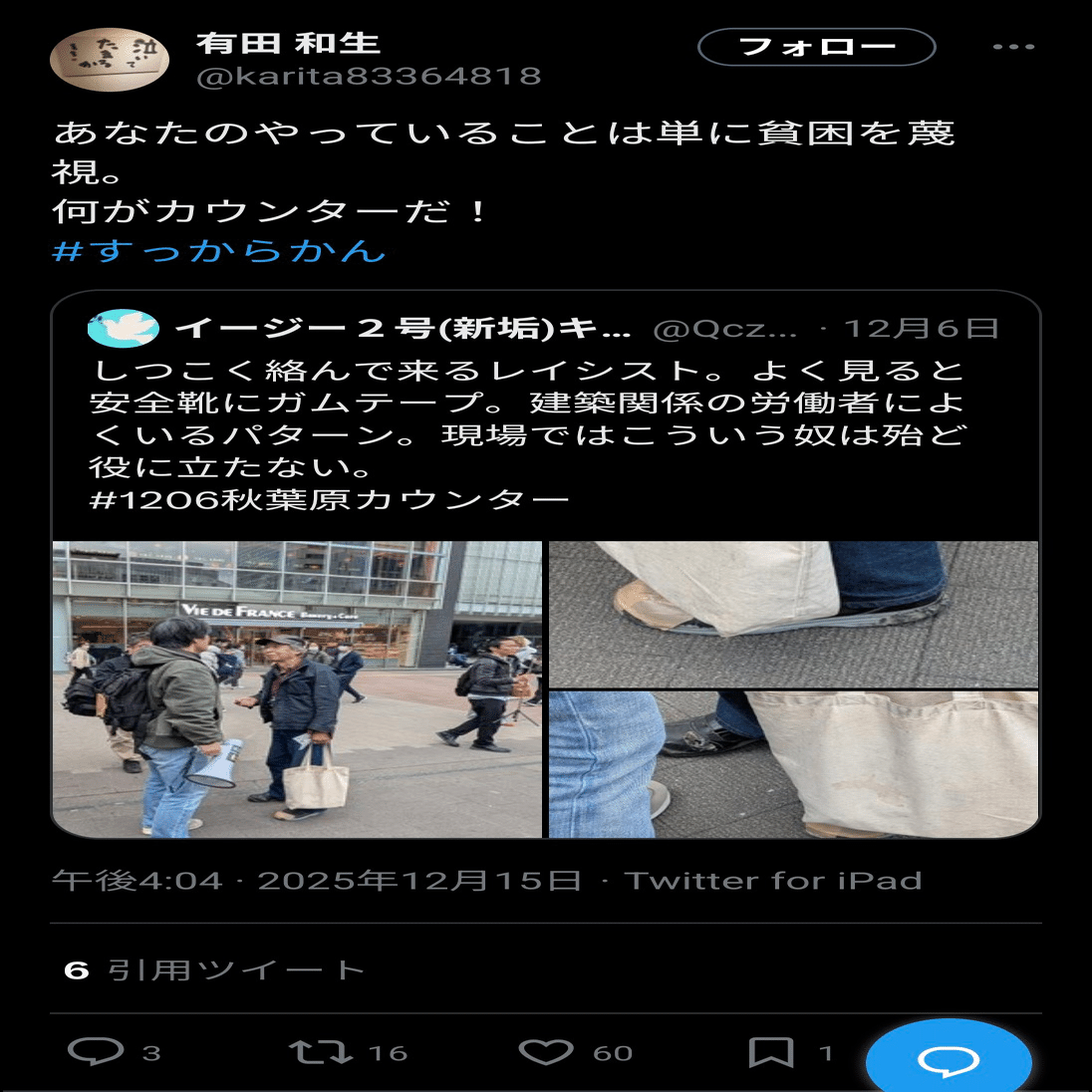 レイシストの格好を巡り「差別だ!」「差別ではない!」とバトル発生 → 野間易通さん「差別です」 → しばき隊「そう思います」 → 上瀧浩子さん「野間さんの言うことは聞くのね」と皮肉 |田山たかし