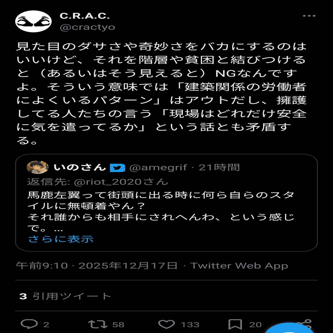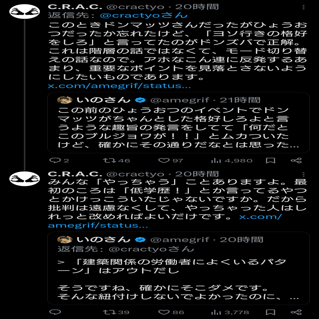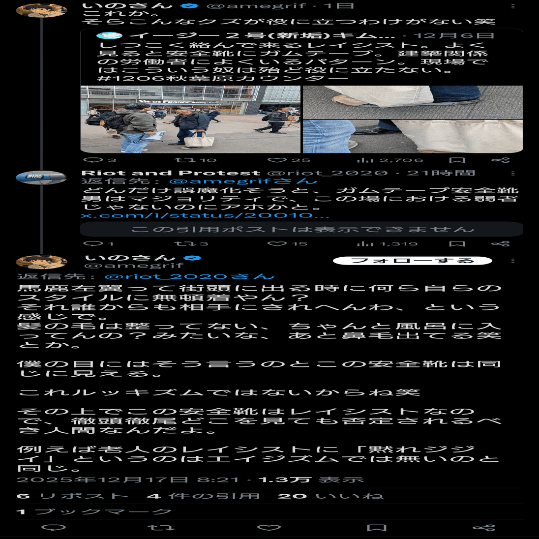 レイシストの格好を巡り「差別だ!」「差別ではない!」とバトル発生 → 野間易通さん「差別です」 → しばき隊「そう思います」 → 上瀧浩子さん「野間さんの言うことは聞くのね」と皮肉
