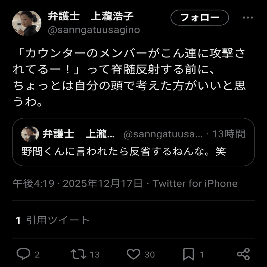 上瀧浩子さんが強烈な皮肉を放つ