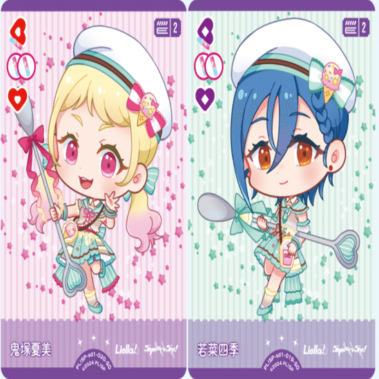 Liellaの15コスト帯メンバーたちはブレードが異常な量増える効果を持っています。特に千砂都は効果を使うことであの嵐珠に匹敵する総ハート数へ化け、1人で12ハート5点のライブを歌えるスタッツになります。