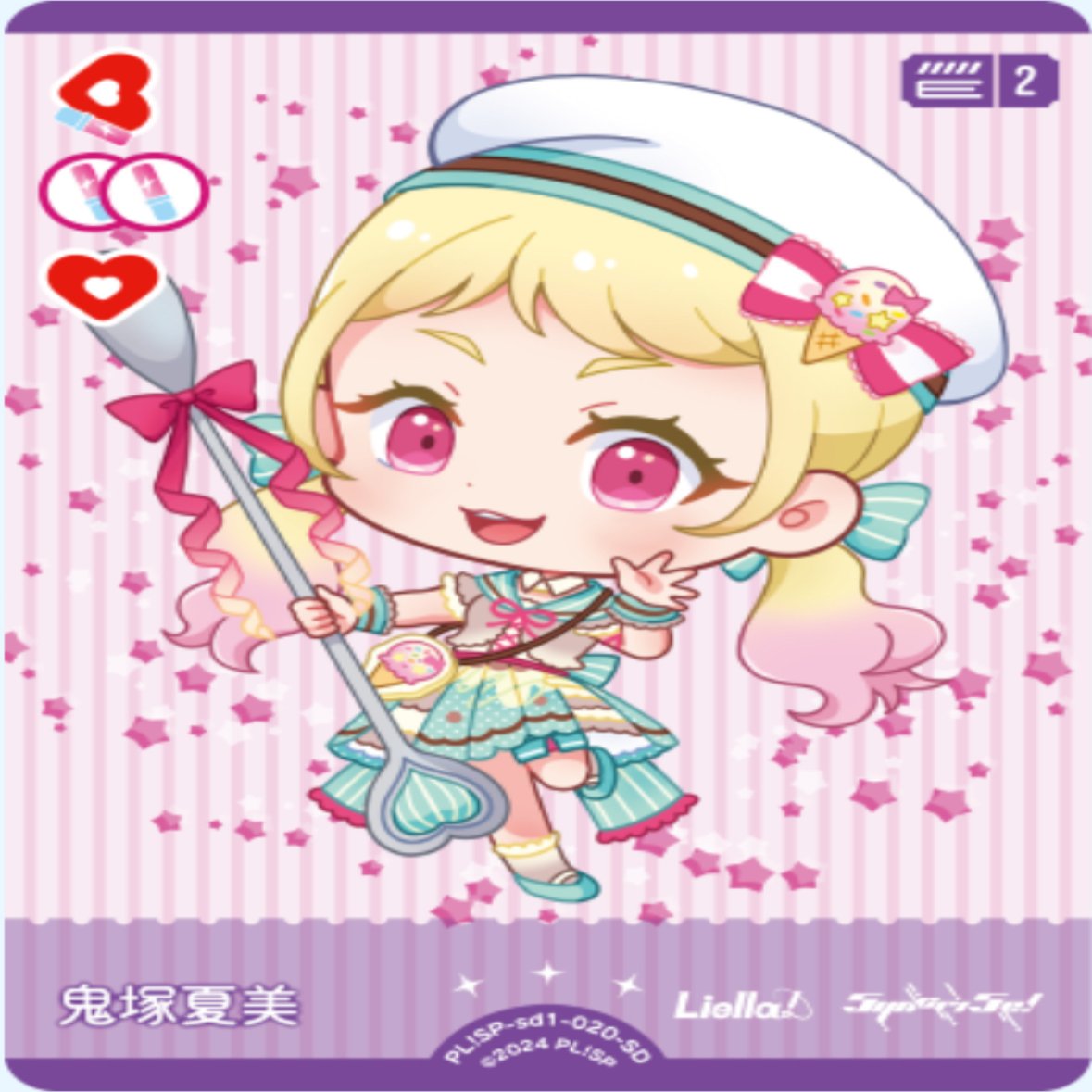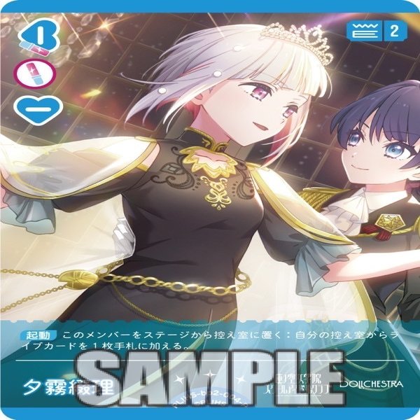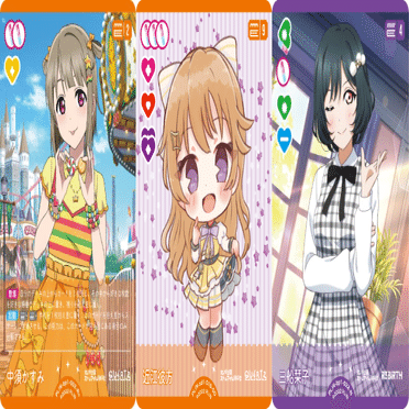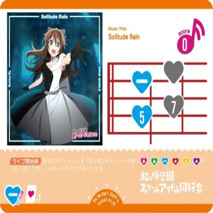 ソリチュの強化パーツです。虹ヶ咲のメンバーではありませんが、ライブ回収に使うだけなので盤面には残らずエールでめくれた時に青ハートを提供してくれるので大変ありがたい追加カードです。