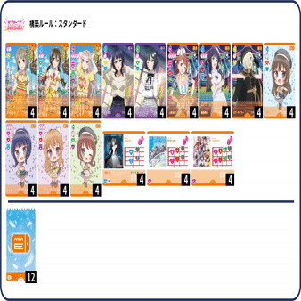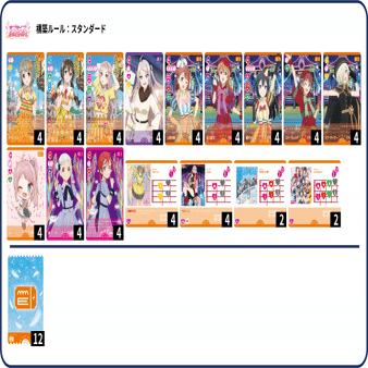 このデッキは1ターン目に4コストメンバーを出し2ターン目に9コストへバトンタッチ、3ターン目に4コストと2コストのメンバーを横に並べてsolitude rainを歌うデッキです。