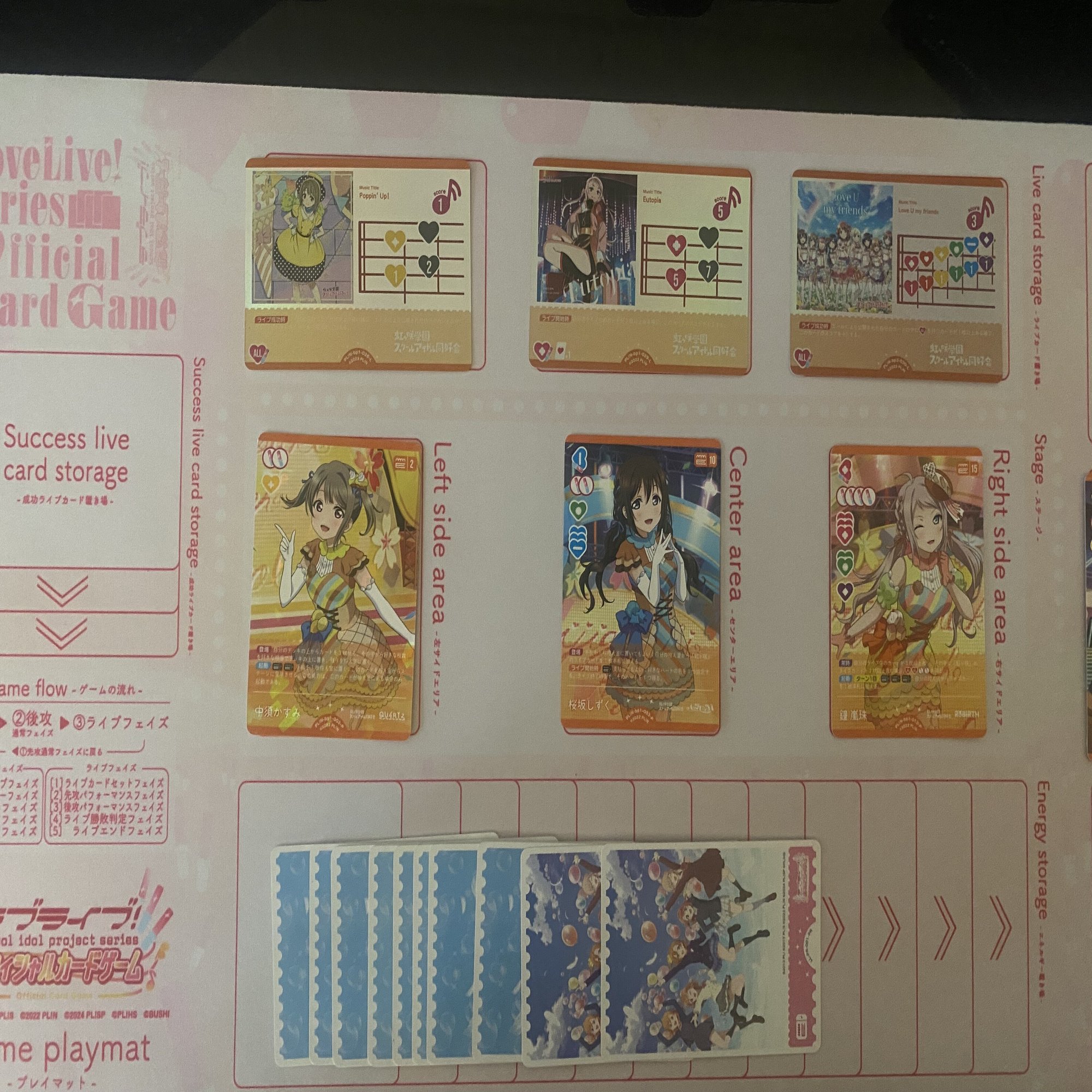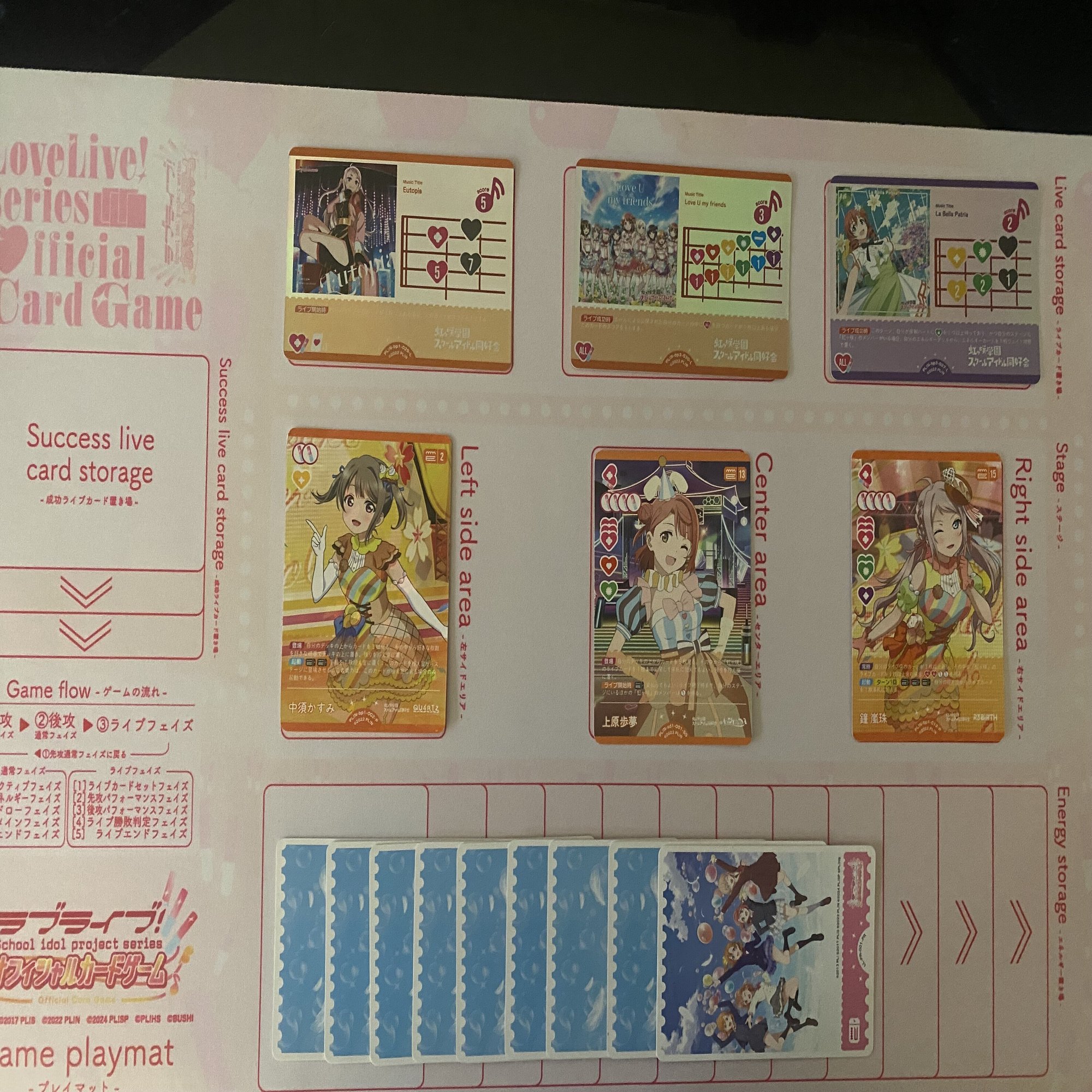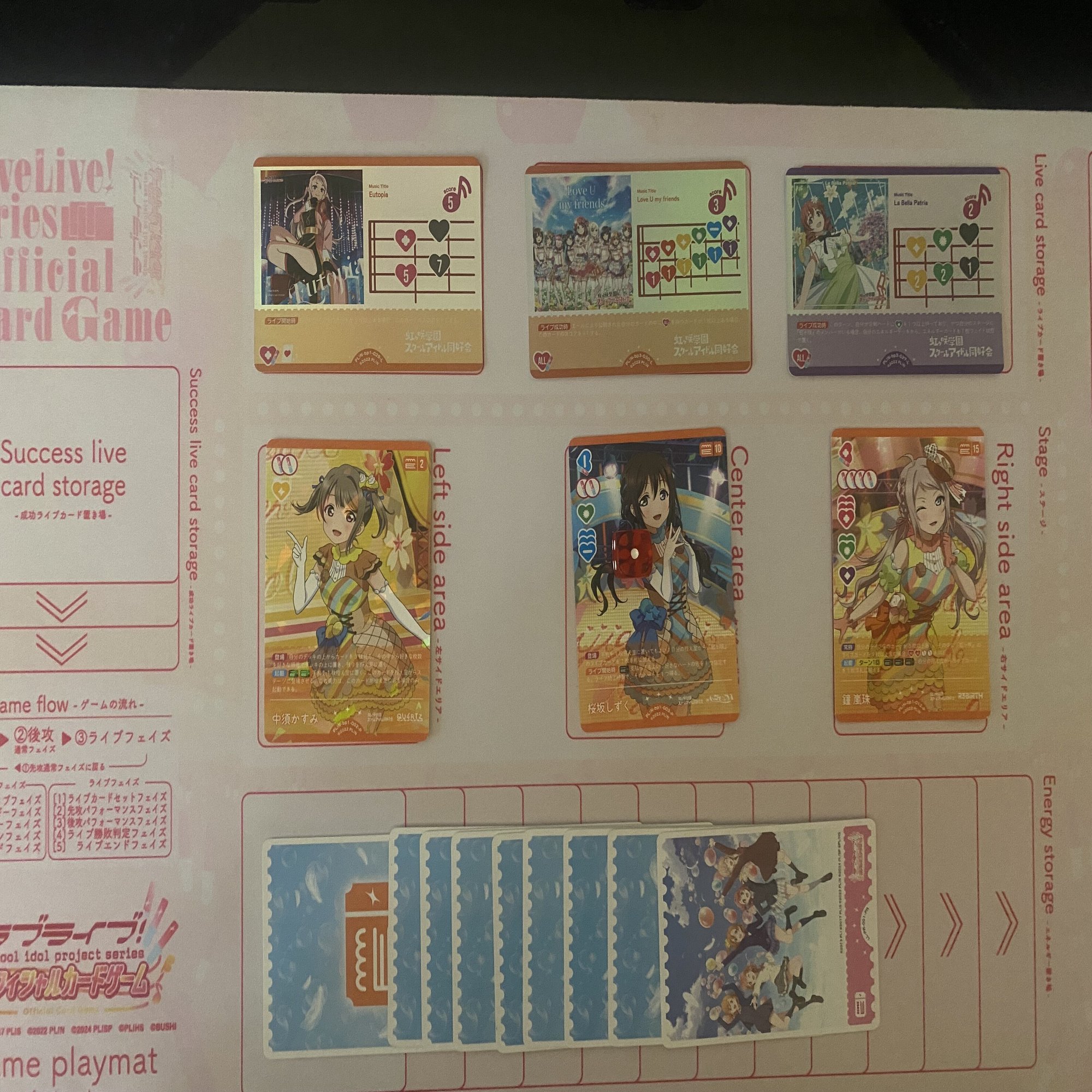 特に、2-13歩夢-15のステージで《上原歩夢》(コスト13)のライブ開始時能力を起動した場合でも、現実的に出せるスコアは13点(《Eutopia》+《Love U my friends》+《La Bella Patria》)が限界であり、最大限ハートを集められる状況でもスコアがやや控えめになる点は構築上の課題といえるでしょう。
