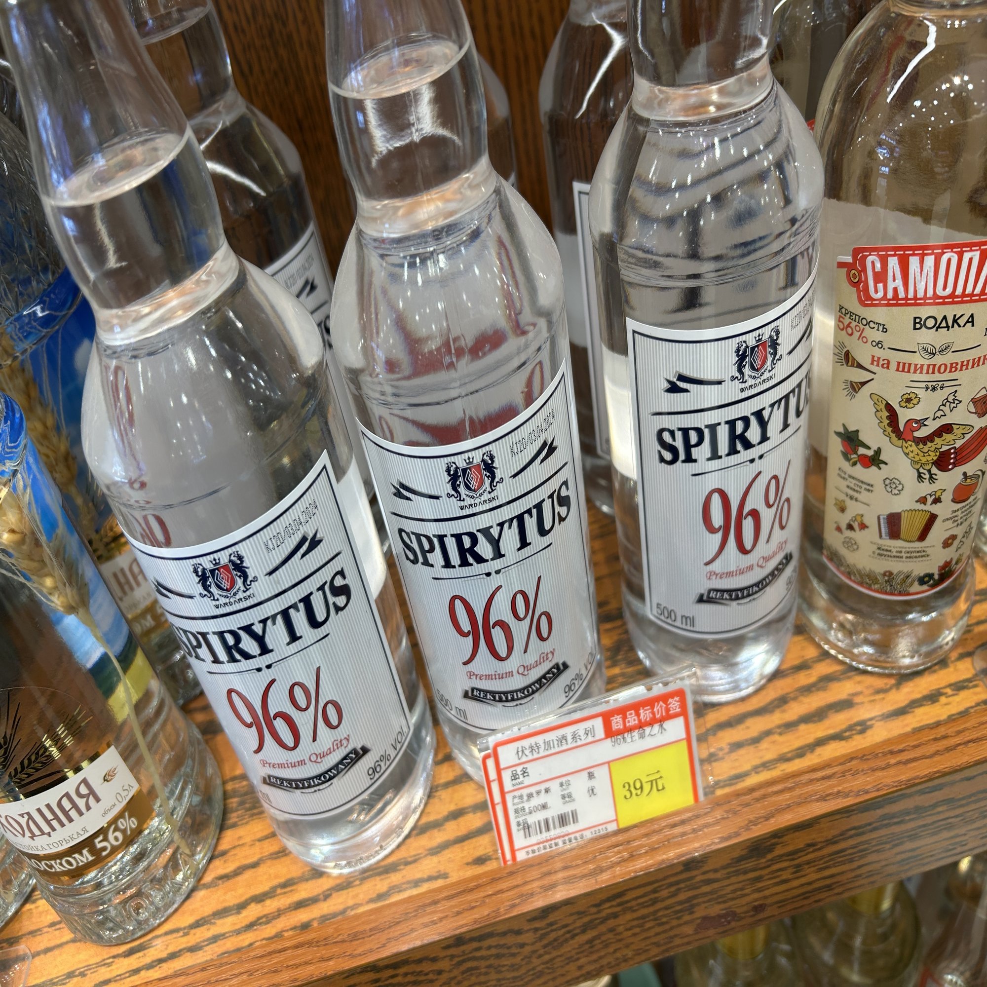 酒コーナーには、アルコール度数96度のスピリタスまで並んでいた。……今思えば、一本買って帰ってもよかったかもしれない。経済制裁の影響で、日本を含む多くの国ではロシア産の酒の輸入が禁じられている。こうして自由に手に取れるのは、中国にいる今だけなのだから。