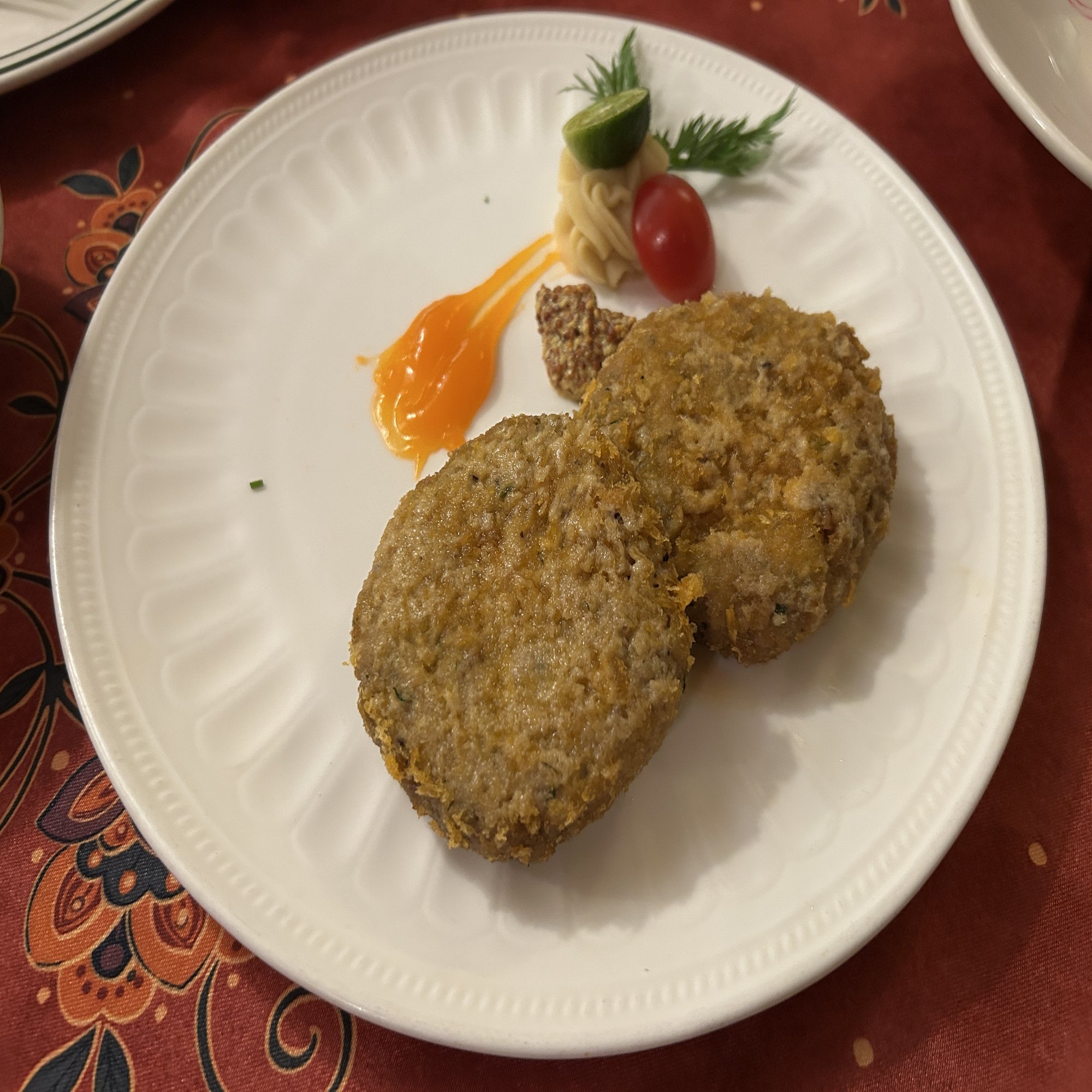 俄式家常肉饼(ポーククロケット)は、中身がぎゅっと詰まった硬派なタイプ。衣もしっとりしていて、塩胡椒はしっかりめ。一応、熱い状態で供されたが、どことなく作り置き感もあった。