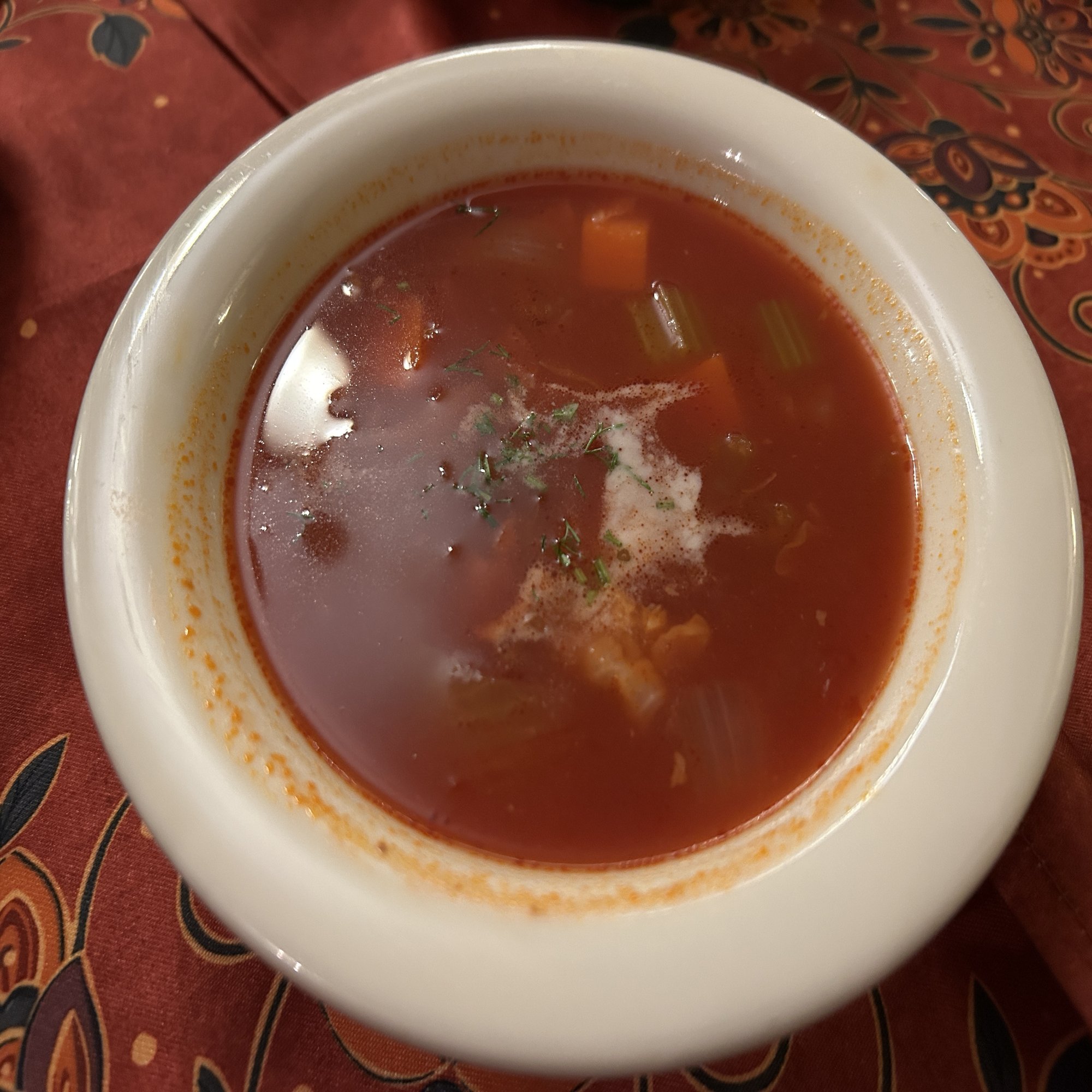 乌克兰红菜汤(ウクライナ式ボルシチ)は、ボルシチというより、昭和の洋食店のミネストローネに近い。トマトの主張が強く、ケチャップほどの甘さはないものの、ビーツの存在感は全く感じられない。