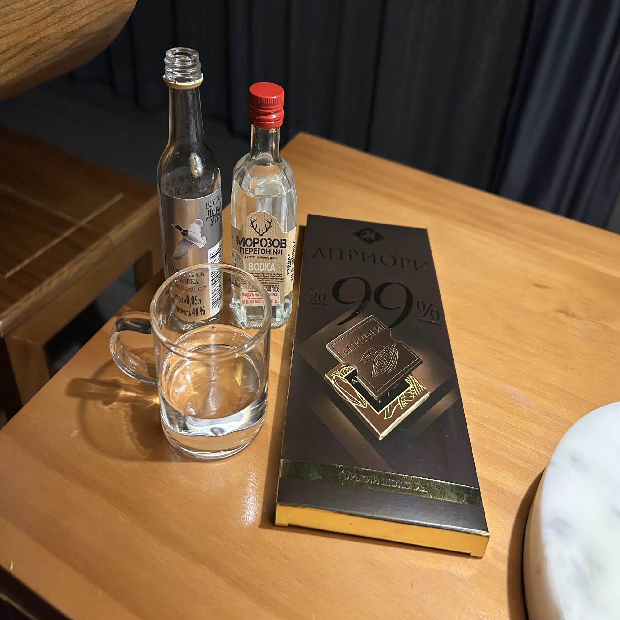 家族が寝た後は、ロシア産のチョコレートをつまみに、ウォッカをちびり。