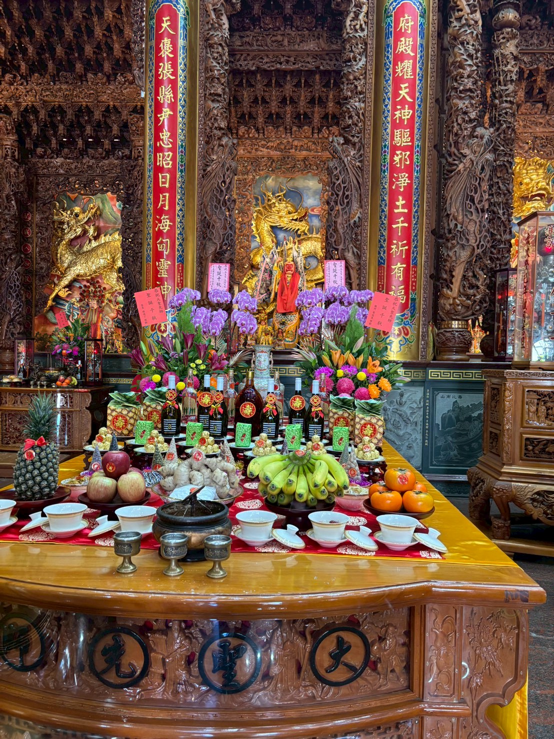 何かのイベントなのか、廟の中で信者の人が集まっていた。