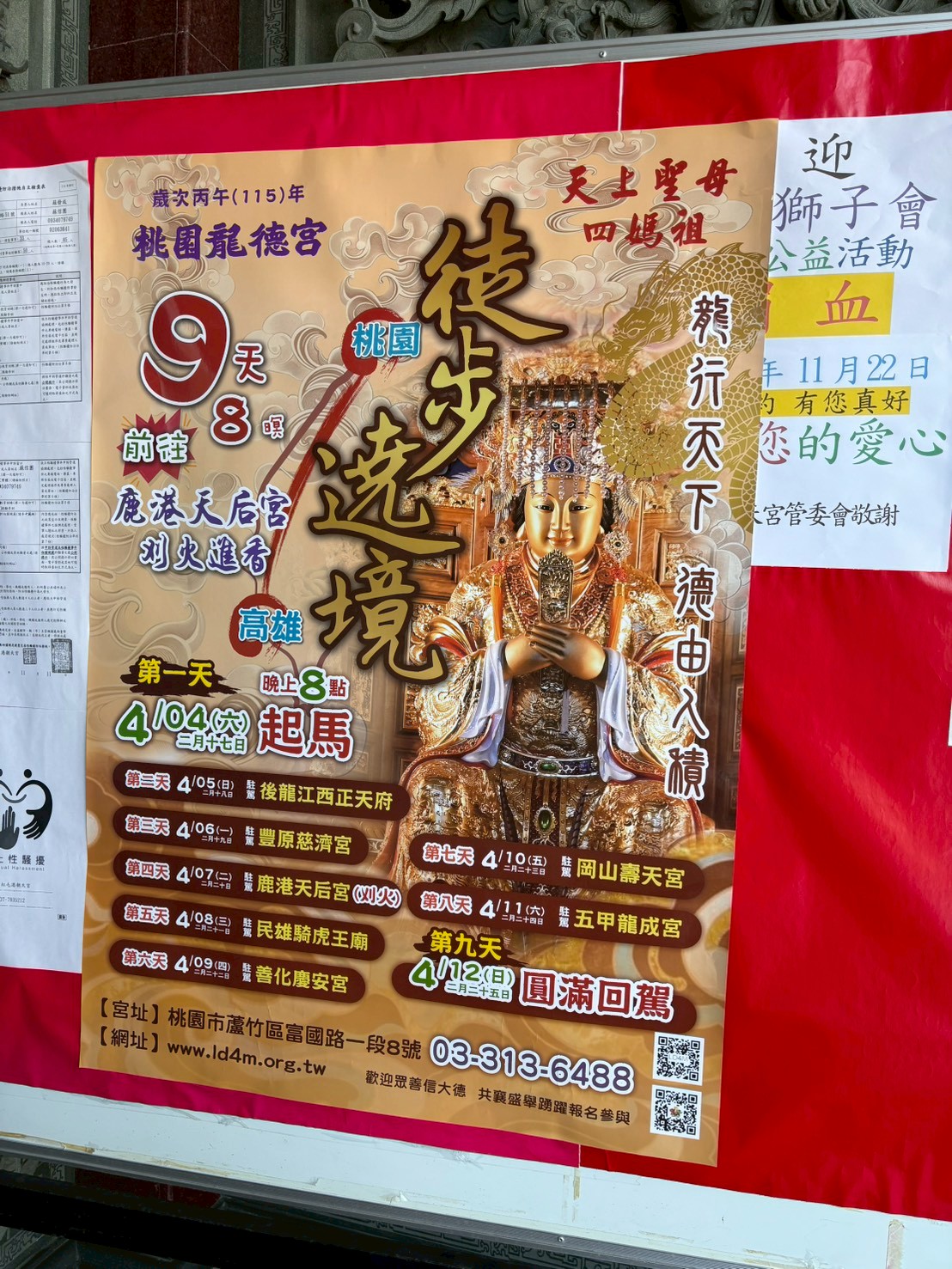 この廟では媽祖を祀っているようで、媽祖祭のポスターが掲示されていた。