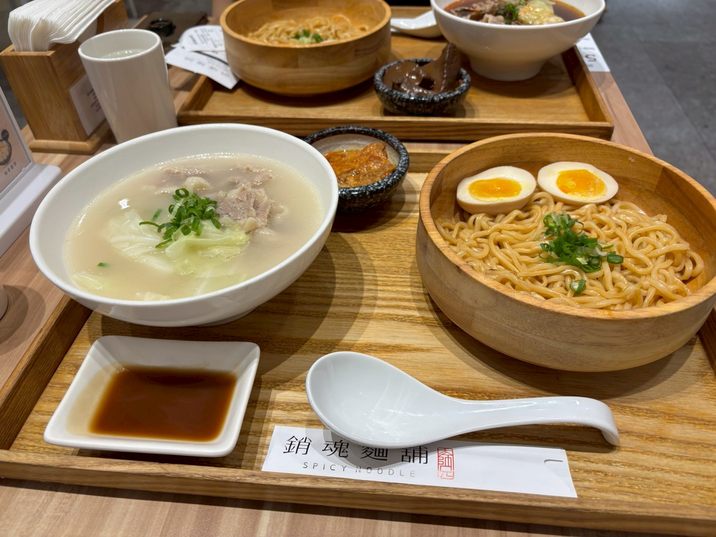牛肉スープのつけ麺が看板商品のようで、わくわくして店に入ろうとしたら、店員さんが「牛肉食べますか」と聞いてきた。「えっ、牛肉系のメニューは全部売り切れ!?」とドキドキしたら、普通にベジタリアンかどうか質問してるだけだった。