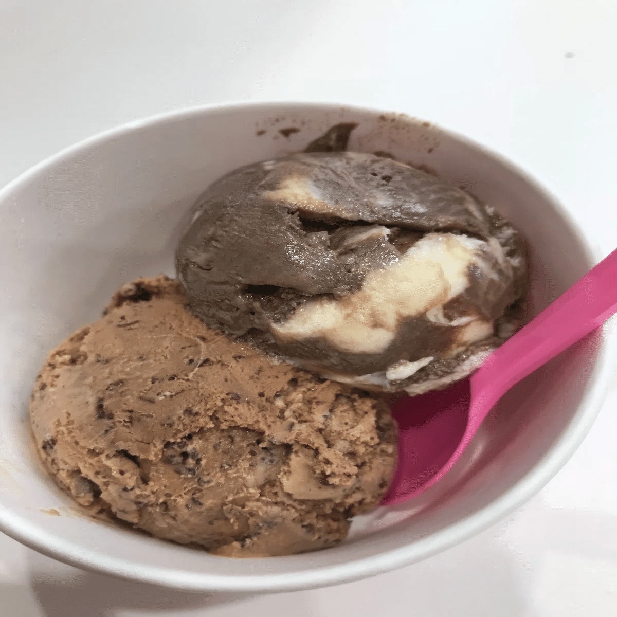 そんなチョコレート系フレーバーの中でも「ワールドクラスチョコレート」は、ミルクチョコレートのおいしさとホワイトチョコレートのおいしさを華麗に組み合わせた至極の一品。2025年12月現在の私の「マイベストサーティーワンアイス」でもあります。サトシで言うピカチュウだと思ってください。