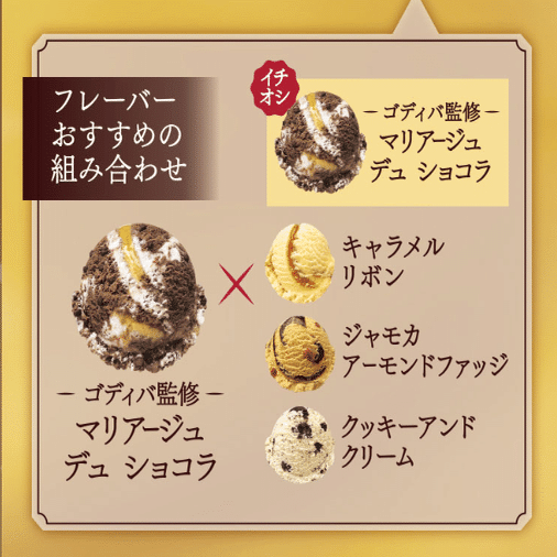 ベルギー王室御用達、高級チョコレートの代名詞ともよべるゴディバが、サーティワンアイスクリームとコラボレーションを果たし、「マリアージュ デュ ショコラ」というシーズンフレーバーを発売したのです。