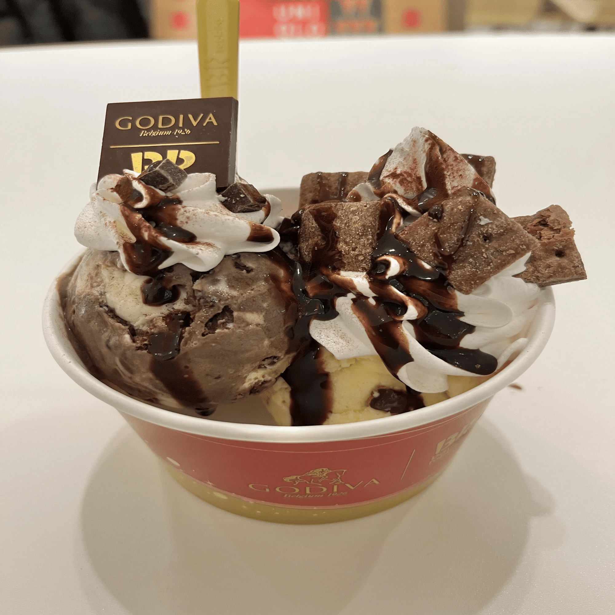 このように美味しいチョコレートアイスをずらりとそろえる、チョコレートアイスクリーム界のドジャースことサーティワンアイスクリームがあえてゴディバとコラボするということは、ゴディバを相手にしても負けない自信があることの何よりの証拠、心強いぜサーティワンアイスクリーム!と思いつつ、早速店舗で食べることにしました。