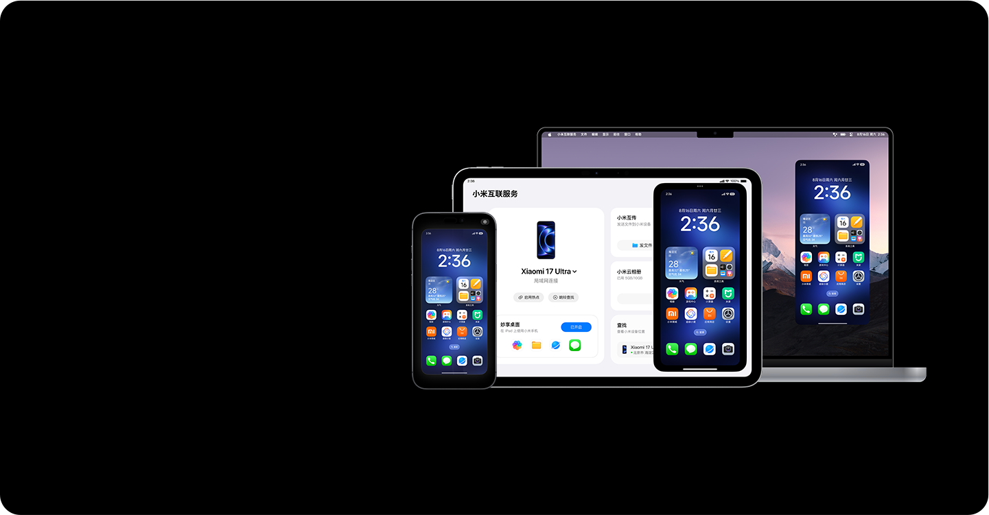 及以上。“设备互联” 与 “跨屏协同服务” 于 12 月 25 日开始推送。使用时请在苹果设备打开“小米互联服务”,确保小米手机与苹果设备已登录相同小米账号、并且