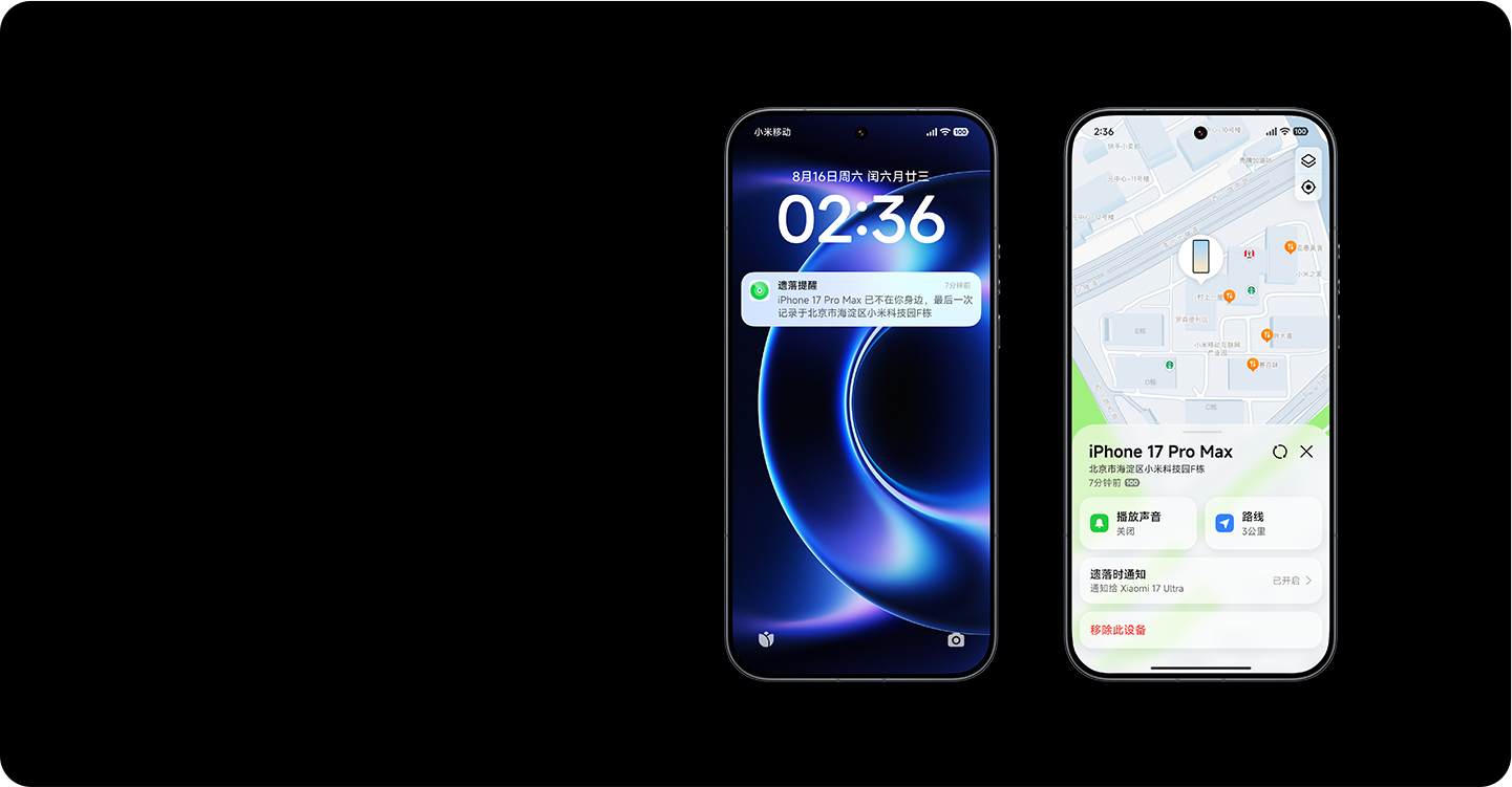 26. 如使用“遗落提醒”功能,请先下载安装最新版“小米互联服务”App。小米手机系统版本需升级至 Xiaomi HyperOS 3 及以上,“设备互联”应用版本升级至 17.1.3.1