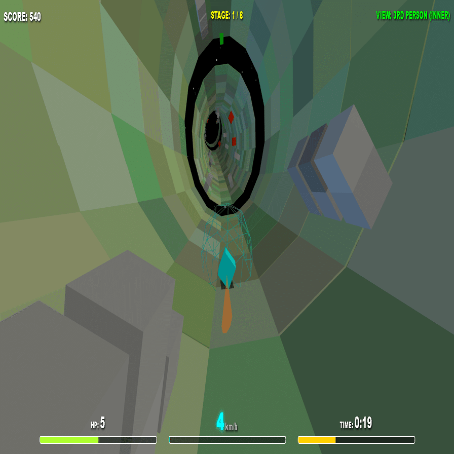 ・F1キー … チューブ内側モードの一人称視点に切り替え。